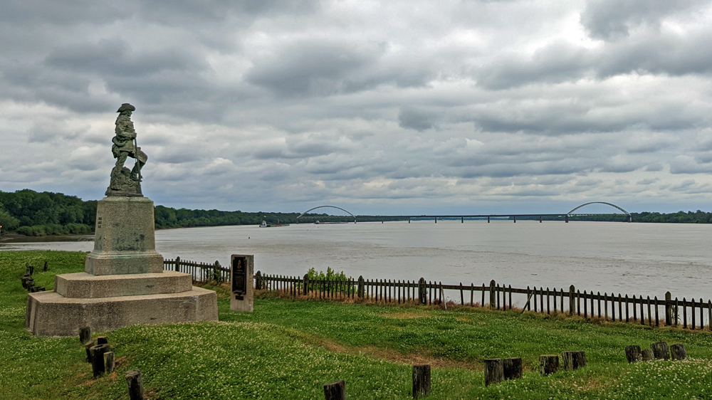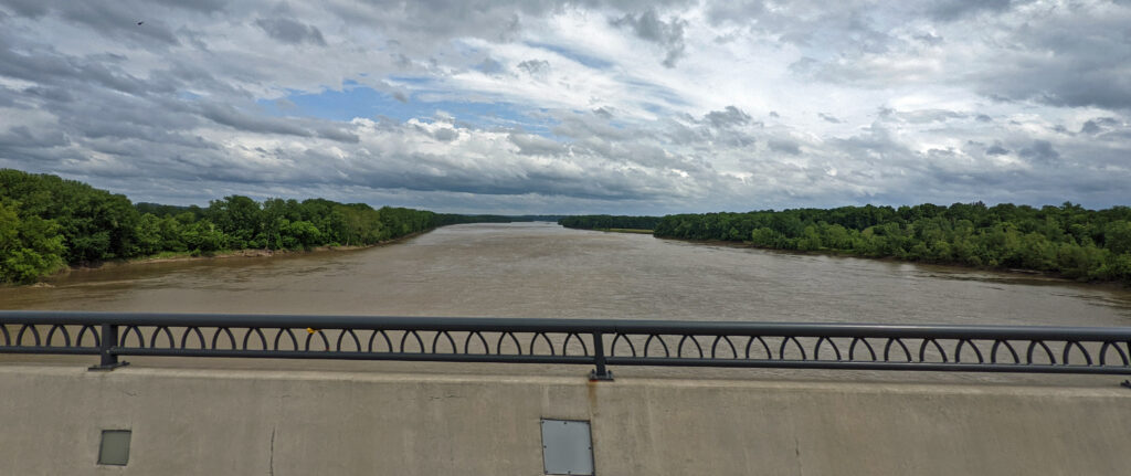 Am 23. Mai geht es endlich wieder weiter! Zwei Nächte bleiben wir wieder im Fort Defiance Park am Zusammenfluss von Missouri und Mississippi. Wir haben über Facebook mitbekommen, dass unsere Freunde Kathleen und Kurt auf dem Heimweg von Florida nach Minnesota sind und ganz in der Nähe vorbeikommen. Sie haben am 25. eine Nacht beim Harvest Host Skyway Ranch bei Elsberry, MO gebucht und wir werden sie dort treffen. (Harvest Host ist eine Vereinigung, wo man gegen eine Jahresgebühr bei den Teilnehmenden Betrieben – oft Brauereien, Weingüter o.ä. – «gratis» eine Nacht stehen bleiben darf. Im Gegenzug wird erwartet, dass man dann dort für etwa 20.- einkauft oder konsumiert. Wir waren ein Jahr lang Mitglied, haben es aber nie ausnützen können, weil es nie gepasst hat und wir ja auch nicht so viel Bier, Wein oder andere Produkte unterbringen können…).