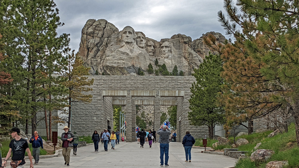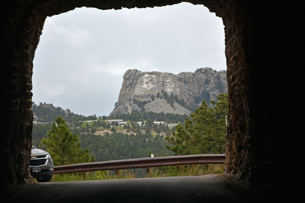 Die nächsten fünf Tage verbringen wir in und um die Black Hills. Eine Nacht auf dem Horse Thief Campground (Forest Service), die übrigen Nächte frei auf einer Waldlichtung. Gleich am Anfang statten wir dem Mt. Rushmore National Memorial einen Besuch ab. Die Strasse svon Keystone her ist so gelegt, dass man in einer Kurve direkt auf den Berg zufährt. Ganz kurz sind wir irritiert, da wir uns die Köpfe irgendwie grösser vorgestellt hatten – bis wir in die Nähe kommen und realisieren, wie riesig der Berg ist…