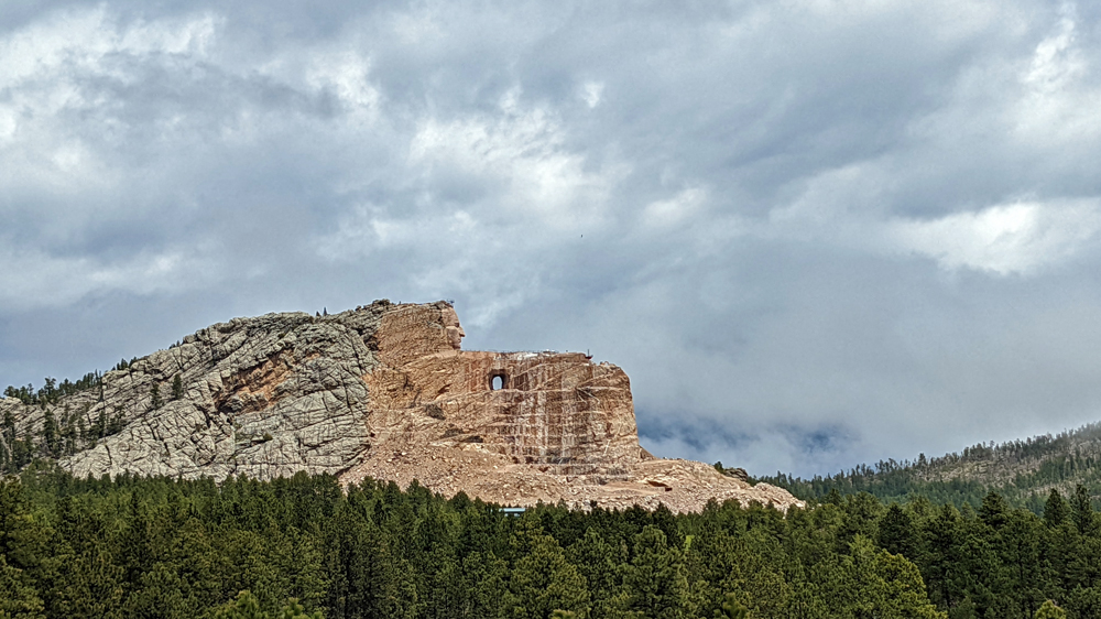 Als «Gegenprojekt» zum Mt. Rushmore Memorial wurde 1939 das Crazy Horse Memorial geplant (Baubeginn 1948), das um ein vielfaches grösser werden und nicht nur einen Kopf, sondern gleich die ganze Büste des auf einem Pferd sitzenden und mit ausgestrecktem Arm nach Osten weisenden Oglala-Häuptlings darstellen soll. Angebote für eine staatliche (Mit-)Finanzierung wurden stets abgelehnt und die Arbeit geht wohl nur sehr langsam voran (bisher wurde nur das Gesicht fertiggestellt). Allerdings entstand um das Denkmal ein grosses indianisches Kulturzentrum mit Vorführungen und Workshops, Museum sowie Universität. Wir haben den postitiven Eindruck, dass die Bewahrung der lebenden Traditionen den Indianern wichtiger ist als ein gigantisches, statisches Monument (das offenbar sowieso nicht ganz unumstritten ist).