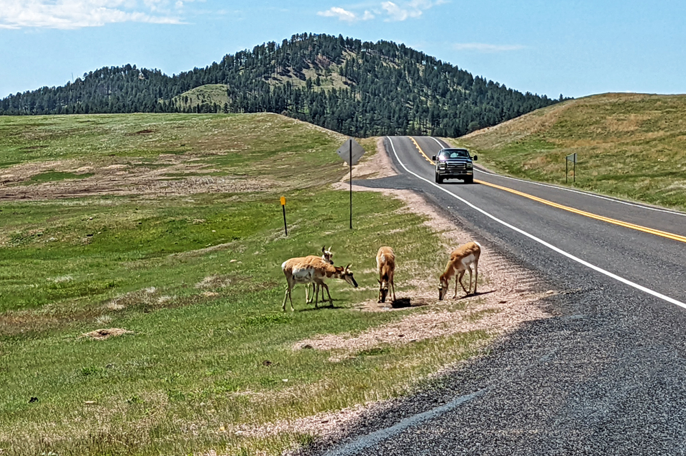 Im Custer State Park am Fuss der Black Hills kann man einen Scenic Loop fahren, auf dem man abwechslungsreiche Landschaft und viele Tiere zu sehen bekommt, ebenso wie im oberirdischen Teil des Wind Cave National Park: Büffel, Wapiti, Pronghorns, Koyoten und Präriehunde schätzen die zwischen offenem Grasland, weiten Waldlichtungen und Ponderosa Pine-Wäldern wechselnde Umgebung.
