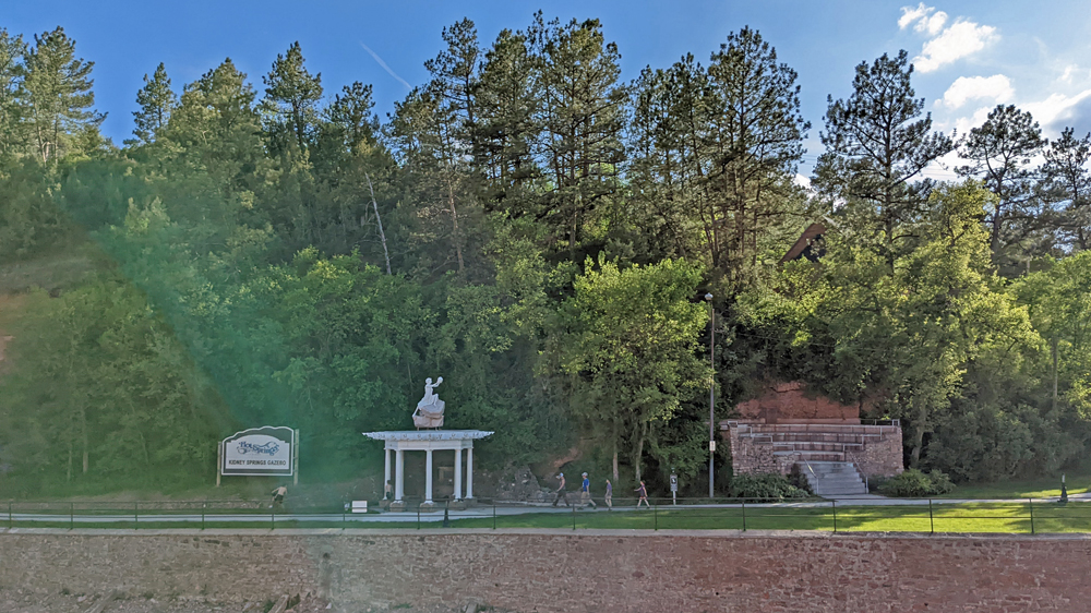 Im Süden der Black Hills lieg Hot Springs, wo wir uns im Evans Plunge prächtig erholen können. Hier wurden bereits 1890 13 Quellen in einem rund 61 x 15 m grossen Zementpool mit Kiesboden gefasst und man kann wunderbar im 31 Grad warmen Wasser schwimmen und in separaten Hot Pots, Dampfbad und Sauna entspannen. Das macht natürlich hungrig und wir versuchen, im lokalen Big Time Pizza-Restaurant etwas zu essen bekommen. Es sah so appetitlich aus beim Vorbeifahren und war auch eines der wenigen Restaurants, das offen hat. Wir gehen also voller Vorfreude hinein, nur, um informiert zu werden, dass wir mindestens eine Stunde warten müssten… Das ist uns definitiv zu lange, weshalb wir halt auf den lokalen Pizza Hut ausweichen… Trotz Personalmangels müssen wir dort zum Glück nicht allzu lange ausharren (ausserdem gab es hier im Gegensatz zum anderen Restaurant auch unter 12’’ = 30.5 cm grosse Pizzas…).