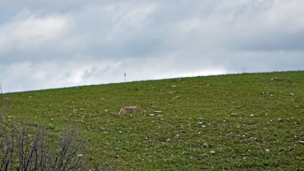 Am Morgen geniessen wir das eindrückliche Panorama. Da hinten würde der Yellowstone NP liegen… Und auf der Karte sieht es sooo nahe aus! Aber wir wollen ja nach Alaska. Zudem lädt die Wettervorhersage auch nicht gerade zu einem Besuch meines Lieblings-Nationalparks ein, so dass ich schweren Herzens darauf verzichte (der angekündigte Regen, zusammen mit der Schneeschmelze führen dann zu so gravierenden Flutschäden, so dass der Park mehrere Tage ganz gesperrt werden muss und der Nordteil wohl noch länger zu bleibt ☹ ) .