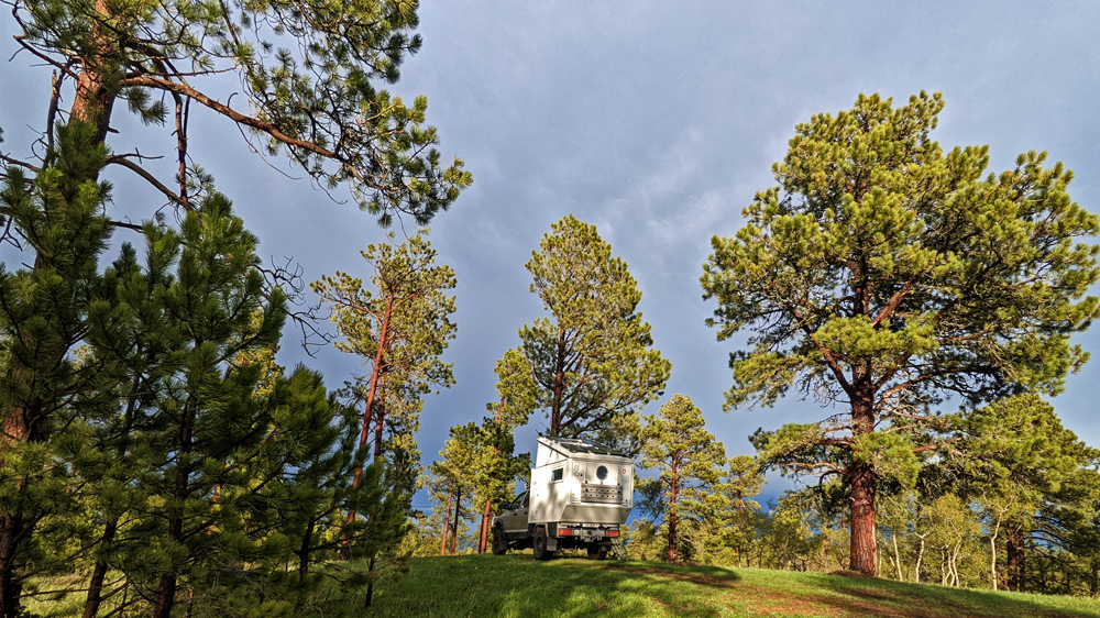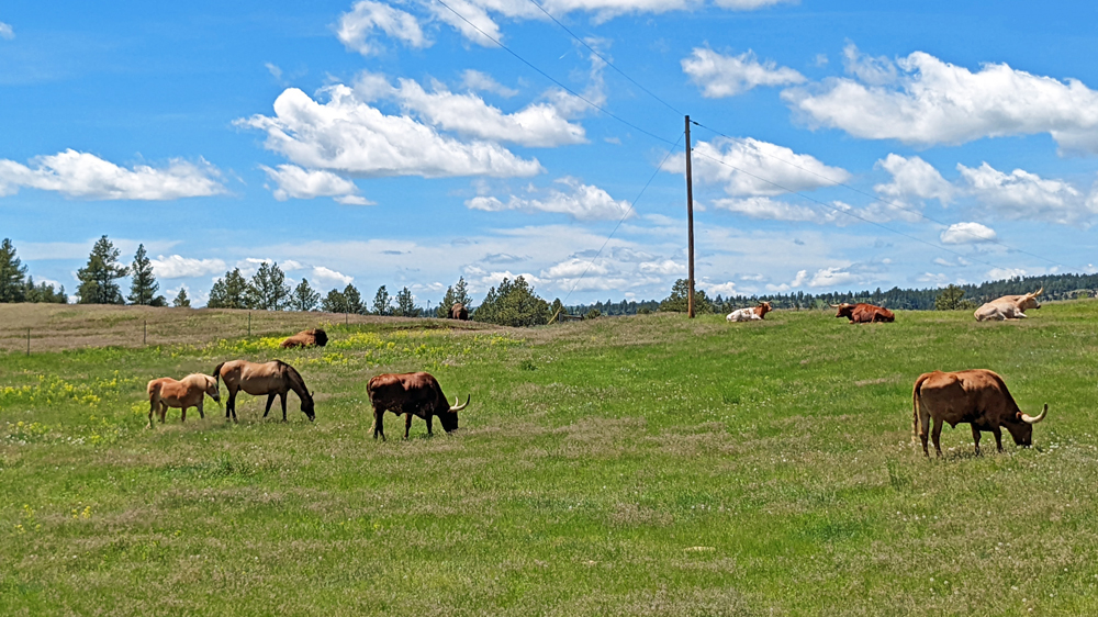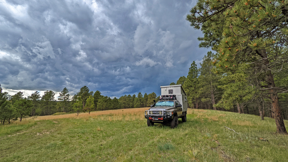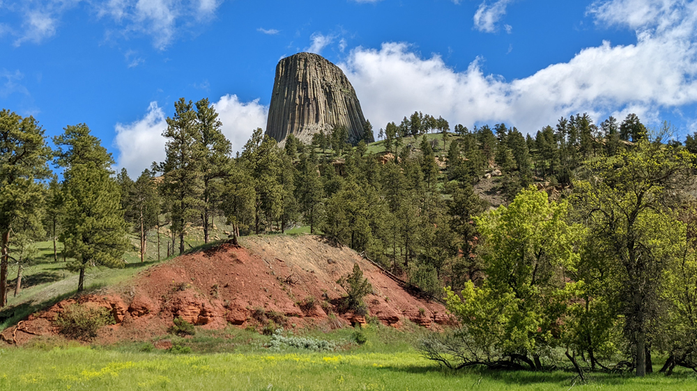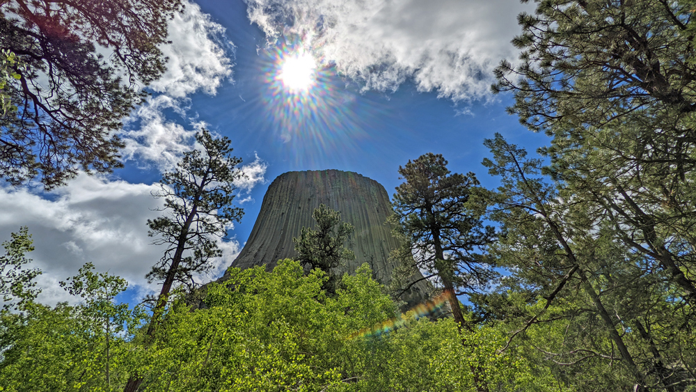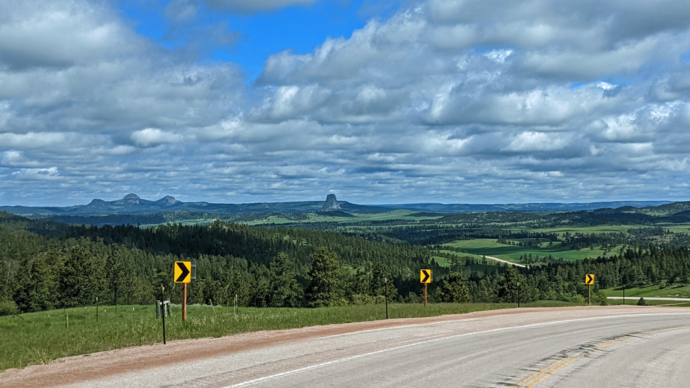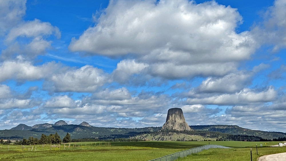 Ozy hat uns einen hübschen Platz im Black Hill National Forest gefunden (diesmal in Wyoming; der NF erstreckt sich über zwei Staaten, mit einer Lücke im I-90-Korridor), wo wir es uns wieder auf einer blumenübersäten Waldlichtung gemütlich machen. Wir lassen die Gewitter über uns durchziehen, während wir uns als «Vorbereitung» auf den Besuch des Devil’s Tower diesmal Steven Spielbergs «Unheimliche Begegnung der dritten Art» anschauen.