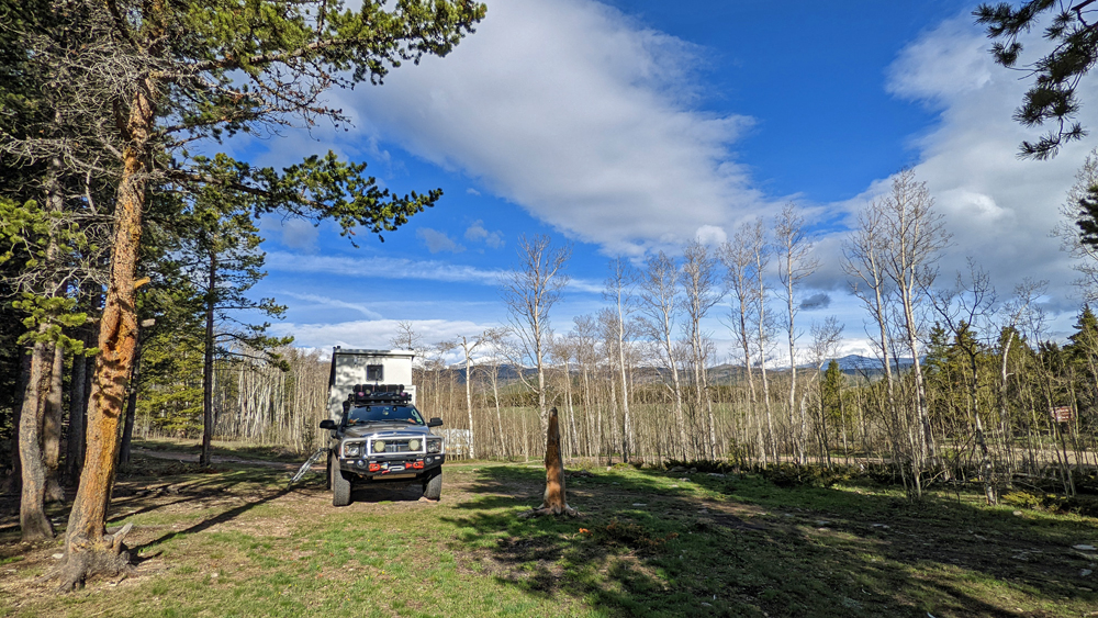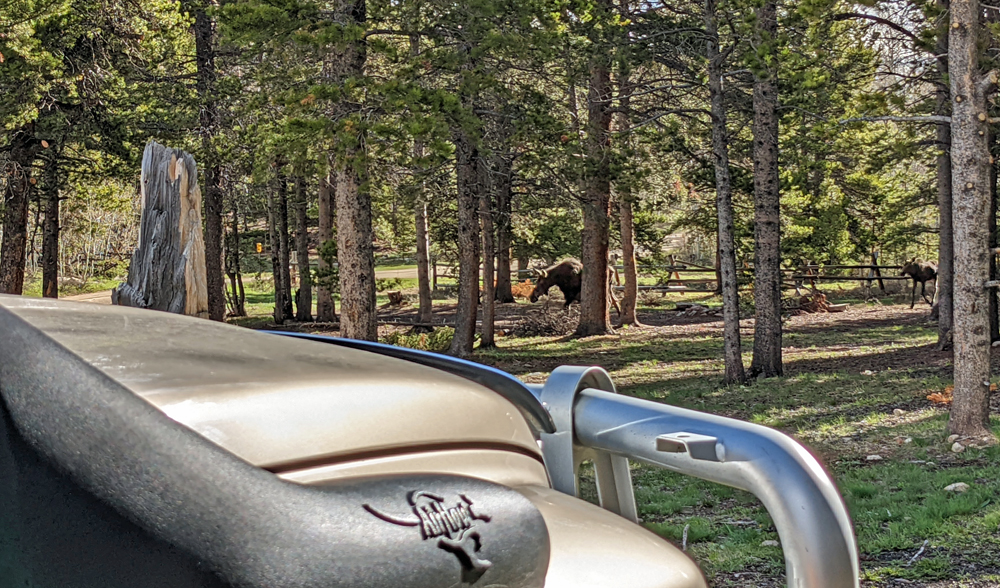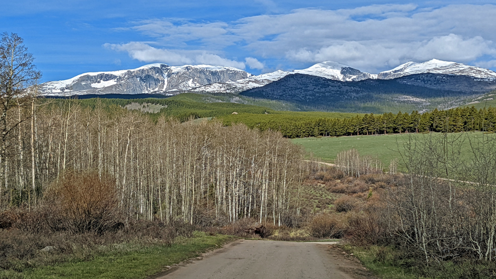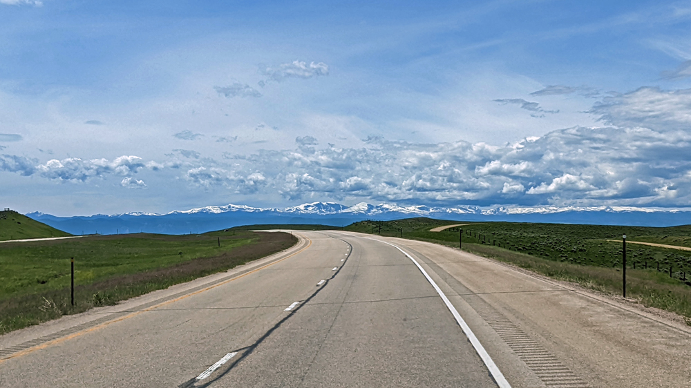 Nun geht es weiter nach Westen, durch die rolling hills Ost-Wyomings. Wir fahren über einen Hügel und unvermittelt taucht vor uns die noch schneebedeckte Kette der zu den Rockies gehörenden Bighorn Mountains auf, die wie eine Wand vor uns aufragt. Zum Übernachten ziehen wir uns auf eine Waldlichtung in den Bighorn National Forest zurück, wo wir uns auf 2’400 m ü. M. wiederfinden. Zum Glück vertragen wir dieses Mal die Höhe besser als im letzten Juli…