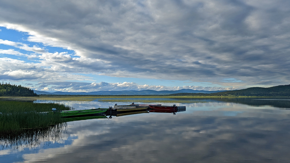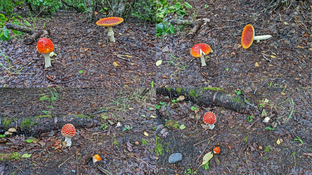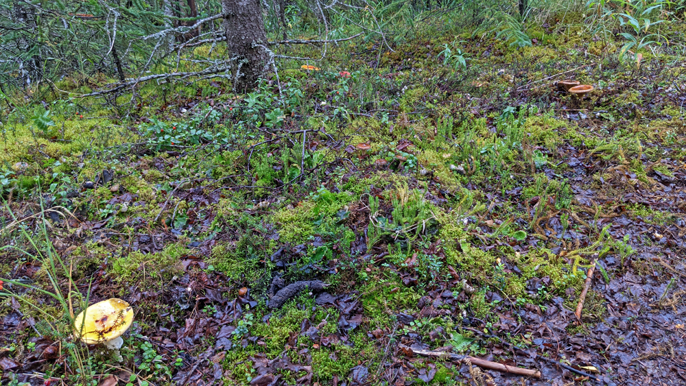 Der See ist überhaupt ein beliebter Ort für Wasserflugzeuge und wir können einige Starts beobachten. Das feuchte Wetter sorgt dafür, dass die Pilze hier buchstäblich aus dem Boden schiessen. Vor allem Fliegenpilze schmücken den Wald mit ihrem leuchtenden Rot-Weiss.