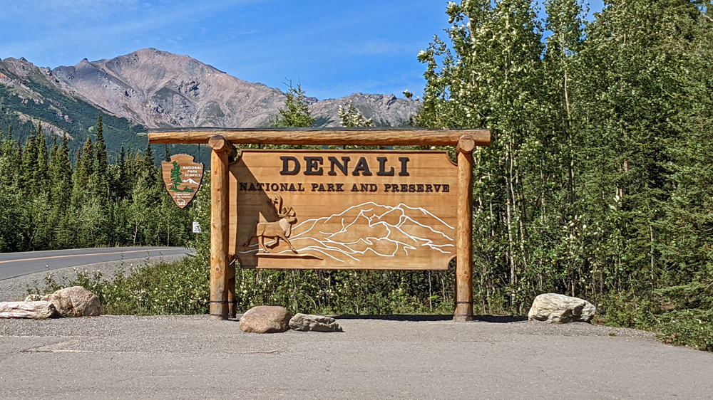 Ein kleines und sehr kurzes Highlight ist die Sichtung vom Denali an einer Stelle des Grünen Kanals, bevor wir bei Cantwell auf den Parks Highway Richtung Norden und damit Richtung Denali NP einbiegen. Nachdem wir hinter einem Pilotcar durch eine lange Baustelle mit massiven Erdbewegungen geschlichen sind, haben wir es endlich geschafft und fahren in den berühmten Denali Nationalpark. Er ist offenbar tatsächlich DER must-see-Punkt, denn auf die naive Frage nach einem Übernachtungsplatz werden wir freundlich, aber leicht genervt informiert, dass alle Plätze für die nächsten zwei Wochen ausgebucht seien…