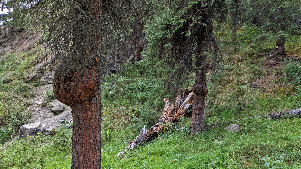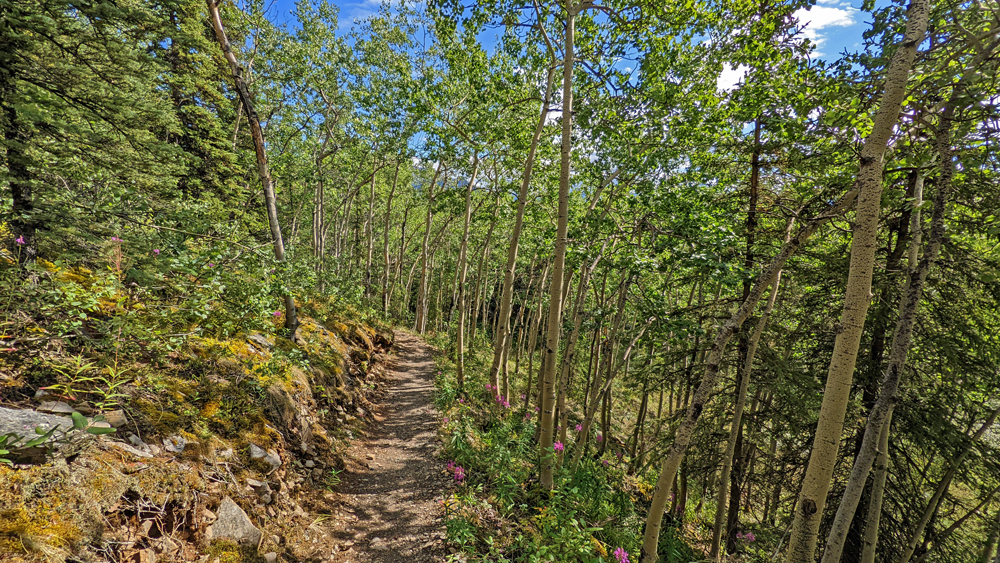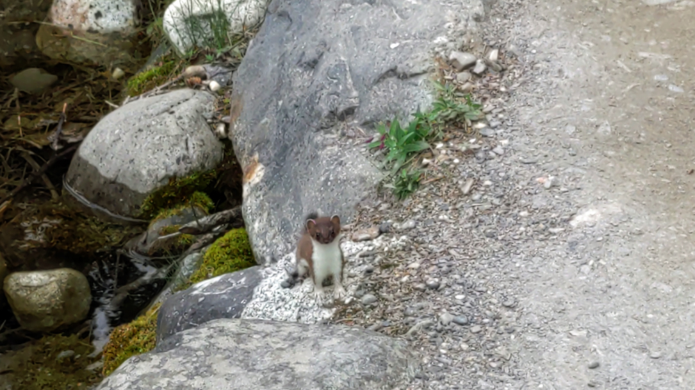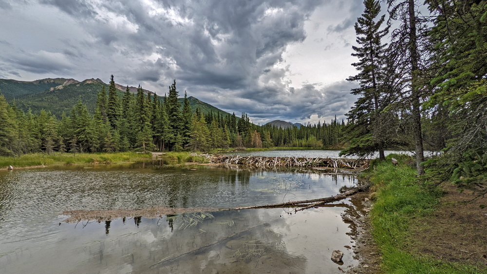 Nach einer kurzen Pause beim Visitor Center habe ich das Gefühl, dass ich zusätzlich eine kleine Wanderung um den Horseshoe Lake anhängen könnte. Der von Bibern noch mehr aufgestaute, dunkel-türkisfarbene See liegt malerisch in einem Talkessel. Die tierischen Baumeister sehe ich zwar nicht, aber dafür kann ich ein Hermelin beobachten, das sich von mir überhaupt nicht stören lässt und auf der Suche nach Beute buchstäblich wieselflink zwischen den Felsen herumhuscht. So schön!!!