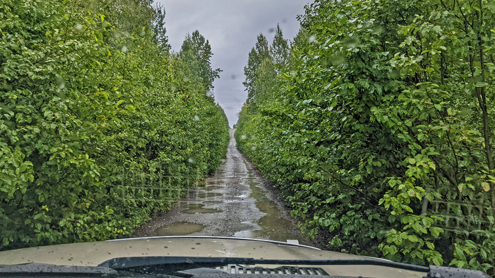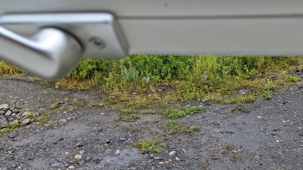 Am nächsten Morgen ist es noch trüber und mit 9 °C auch noch kälter. Wir beobachten ein paar Schneehühner, die um unser Auto wuseln, und machen uns dann wieder auf den Rückweg. Bei dem Wetter bringt es nichts, hier zu bleiben, auch wenn uns die wilde Einsamkeit sehr gefallen hat.