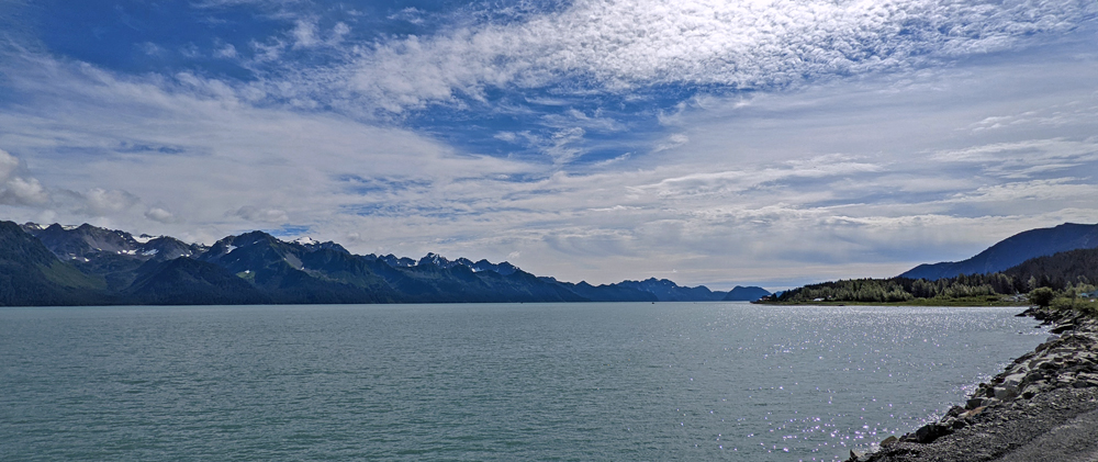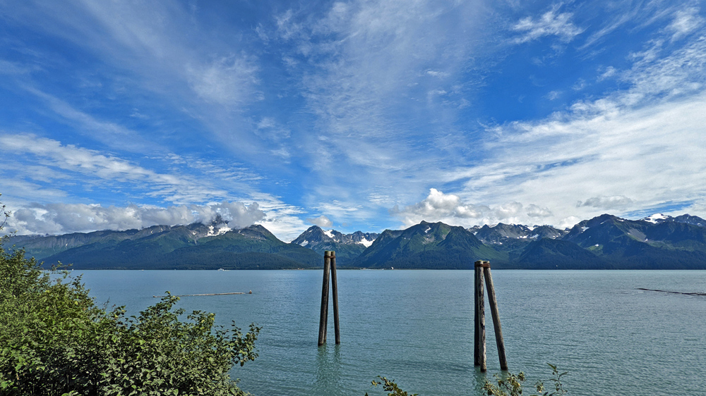 Man könnte auf dem städtischen Campground in Seward bleiben, aber abgesehen von den meist schönen Malereien begeistert uns der Ort nicht so sehr. Auch wenn wir gerne nochmals einen Abend mit unseren Reisefreunden verbringen würden (Sandro hatte auch angekündigt, einen selbstgefangenen Lachs zum Abendessen zuzubereiten – eine wirklich verlockende Aussicht!), entschliessen wir uns, weiter Richtung Soldotna und Homer zu fahren. Es ist noch relativ früh und es kommen schon wieder Wolken auf. Da möchten wir das schöne Wetter (mit angenehmen 17 °C) auszunutzen.