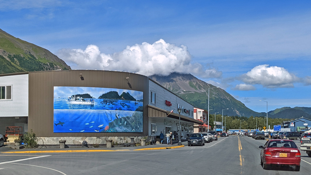 Als nächstes machen wir einen Ausflug ins nahegelegene Seward, offiziell die «Wandbild-Hauptstadt Alaskas», und fahren bis zum Lowell Point, dem südlichsten mit dem Auto erreichbaren Punkt an der Resurrection Bay.
