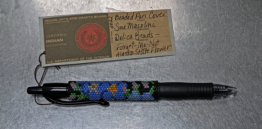 Am Abend sind wir wieder bei unseren lieben Freunden Penny und Don eingeladen und auch Kayla ist dabei. Don brät nochmals herrliche Ribeye Steaks auf dem Grill, während wir Tomaten-Mozzarella-Salat beisteuern. Penny übergibt mir zwei wunderschöne Geschenke von Mary und Susan, Pennys Schwester und Mutter, die wir bei unserem letzten Besuch kennenlernen durften: ein herrliches Paar Perlenohrringe mit Raben-Dekor, den ich bei Mary so bewundert hatte, und einen mit einer exquisiten Vergissmeinicht-Perlenstickerei verzierten Stift! Susan und Mary sind zertifizierte Athabasca-Künstlerinnen und entwerfen ihre eigenen Arbeiten, die sie online verkaufen (My Sticks N‘ Stones Shop) .