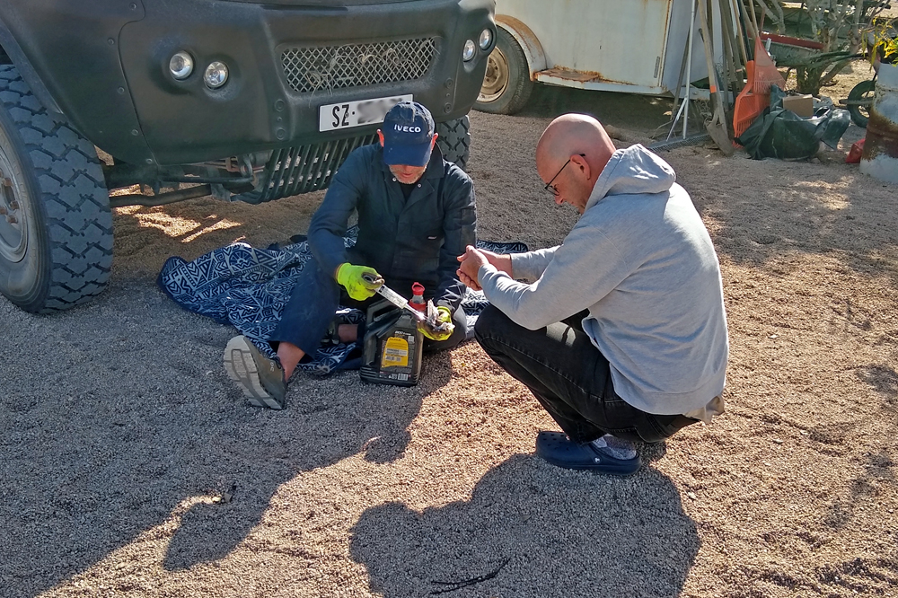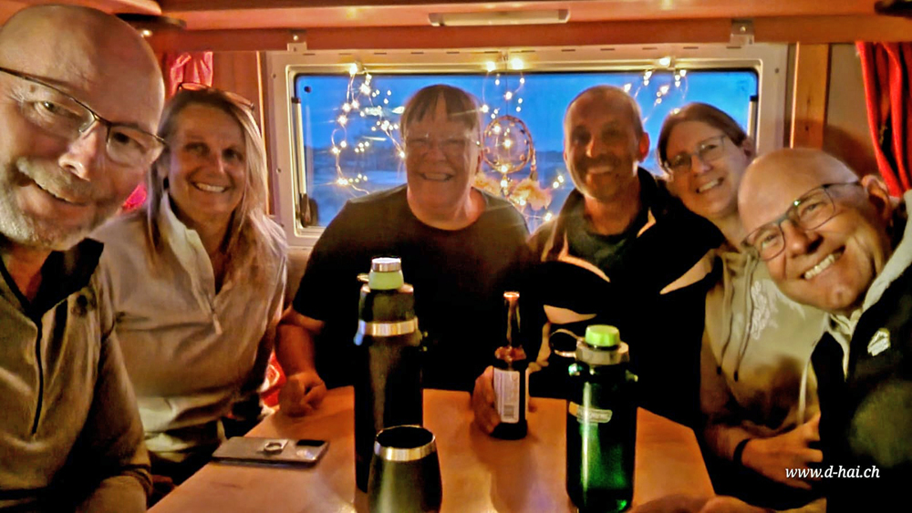 Wir geniessen die Aussicht aufs Meer und machen die Bekanntschaft von amerikanischen Overlandern (Mike und Diane Loosle, mit Schweizer Vorfahren, und «Runaway Rinaldis» Mike und Klare), die uns netterweise zu sich ans Feuer einladen, wo wir einen schönen Abend zusammen verbringen.