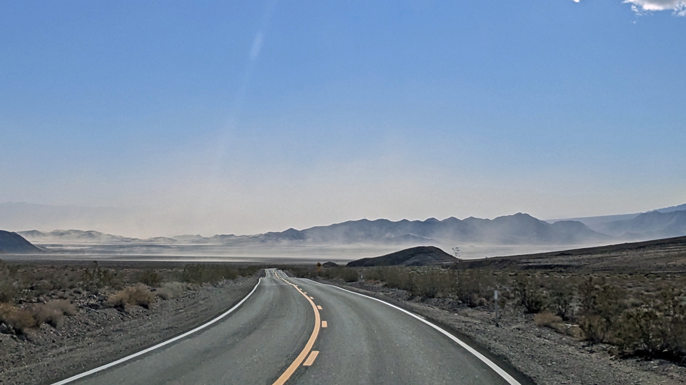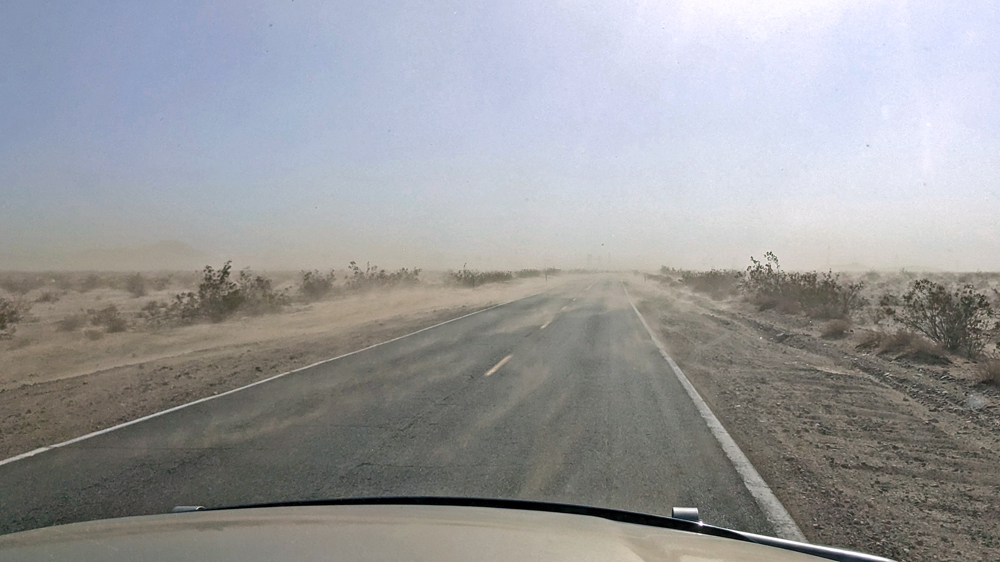 In jedem der basins, die wir durchqueren, müssen wir uns durch dichtes «Sandtreiben» kämpfen und streichen deshalb auch gleich den geplanten Stopp in der Mojave Preserve. So macht es einfach keinen Sinn!