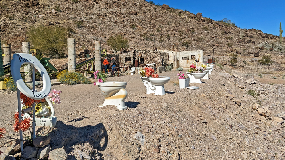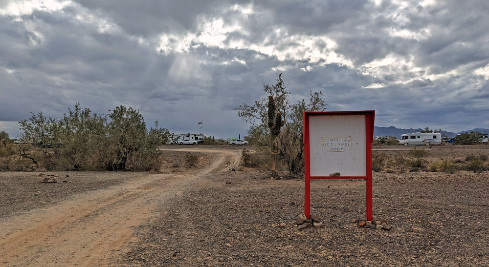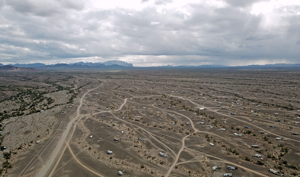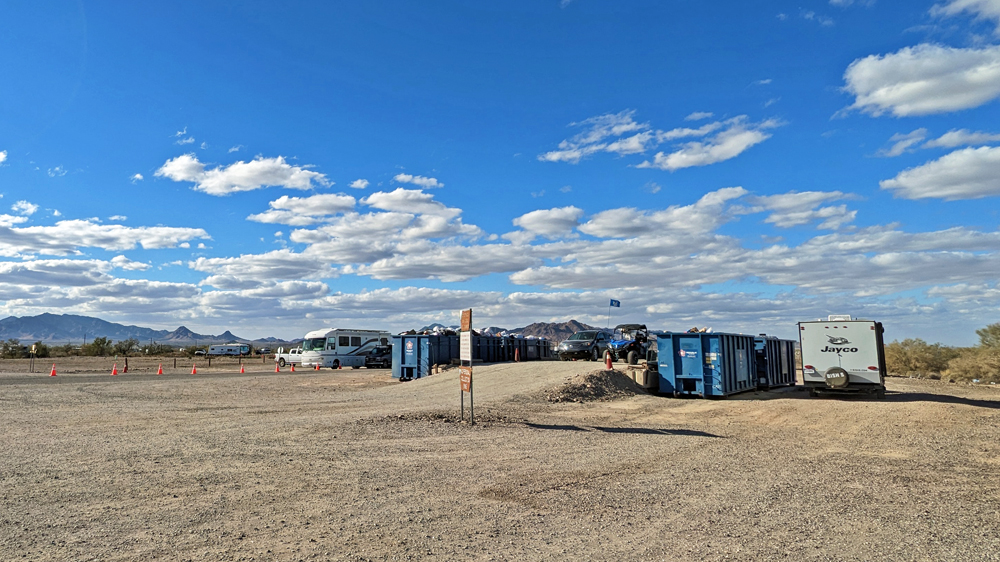 Das BLM-Land in Arizona und insbesondere um Quartzsite ist sehr bekannt als Überwinterungsort für Menschen aus dem Norden. So sehr, dass hier das Bureau of Land Management zum Teil spezielle «Long Term Visitor Areas» mit einer gewissen Infrastruktur wie Abfallentsorgung, dumping stations, Wasseranschlüsse und dem gelegentlichen Standard-Beton-Plumpsklo eingerichtet hat (anscheinend wird allein in Quartzsite mit 750’000 bis 1 Million Menschen gerechnet!).