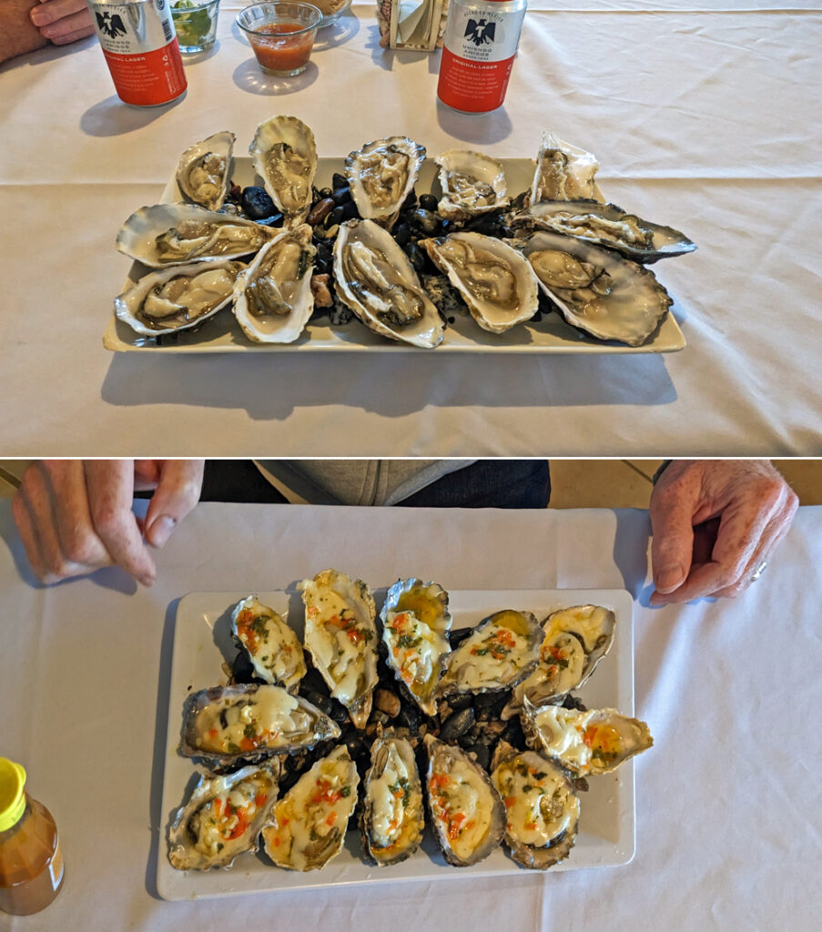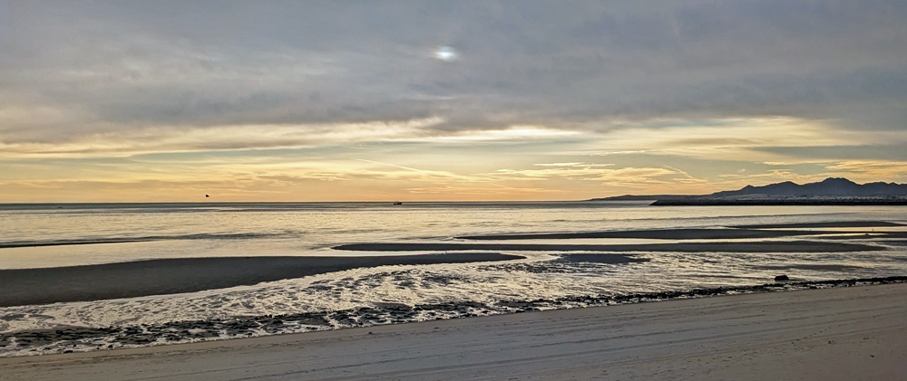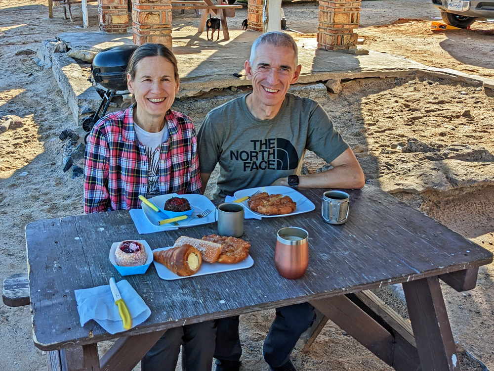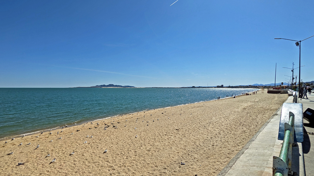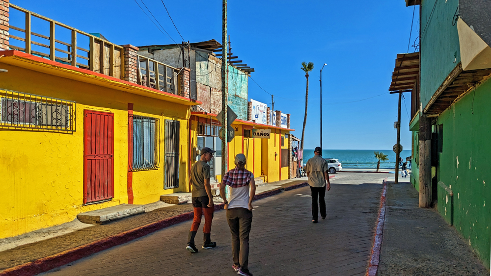 Inzwischen haben wir wieder einmal Kontakt mit Jürgen und Gabi und erfahren, dass sie auch gerade in San Felipe sind! Also ziehen wir am nächsten Tag gleich zu ihnen ins Campo Turistico #1 am Nordende der Stadt. Abgesehen davon, dass wir uns freuen, sie wiederzusehen (das letzte Mal war in Alaska), treffen wir zwei nette Kanadier mit Hund und essen die besten Austern EVER, die direkt frisch aus der Bucht vor dem lokalen Restaurant geholt werden. Wir verbringen einige schöne Tage, inklusive Spaziergang nach San Felipe (mit Umweg über die Bäckerei mit vielen feinen Süssteilchen…), und fahren dann weiter, weil es uns hier oben einfach zu kalt wird (Jean hatte mir am Abend sogar ihre beheizte (!) Kuscheldecke geliehen, damit wir noch etwas draussen sitzen konnten).