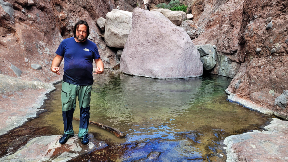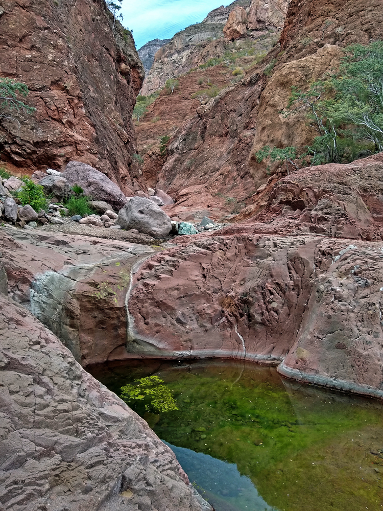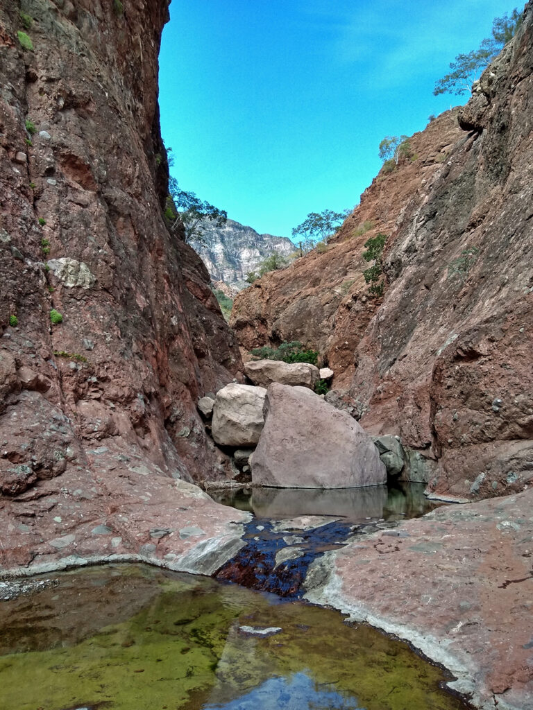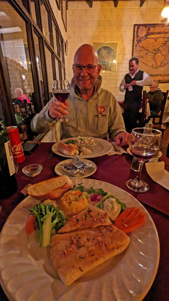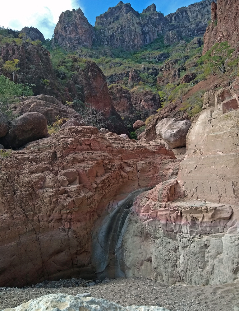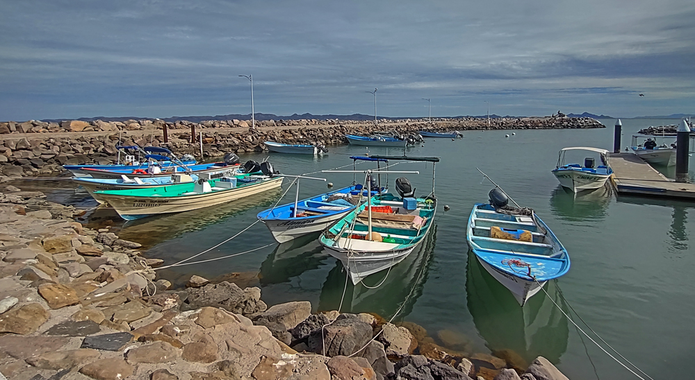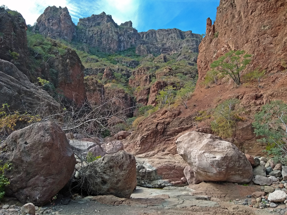 Bald lernen wir auch Valentin und Nadia kennen. Sie sind aus der Schweiz und ein Jahr mit einem in Kanada gekauften Pickup-Camper unterwegs. Wir machen gemeinsam einen Ausflug in den wunderschönen Cañón Tabor, der dank Valentins Kakteen-Begeisterung und -Kenntnissen noch spannender wird. Die vielen durchs Wandern verbrannten Kalorien müssen natürlich aufgefüllt werden und wir geniessen auf derr Rückfahrt im «Clam Shack» eine Auswahl an Gerichten mit Fisch und Meeresfrüchten (leider keine lokalen Chocolate-Muscheln). Bevor die beiden abfahren verbringen wir einen denkwürdigen Abschiedsabend im nahegelegenen Casa Carmen-Restaurant, wo wir nicht nur von zwei (teils sehr verstimmten…) Musikern besungen werden, sondern Valentin das Fischfilet «Diabla» bestellt – und ganz heroisch, buchstäblich unter Tränen inklusive Sauce aufisst!