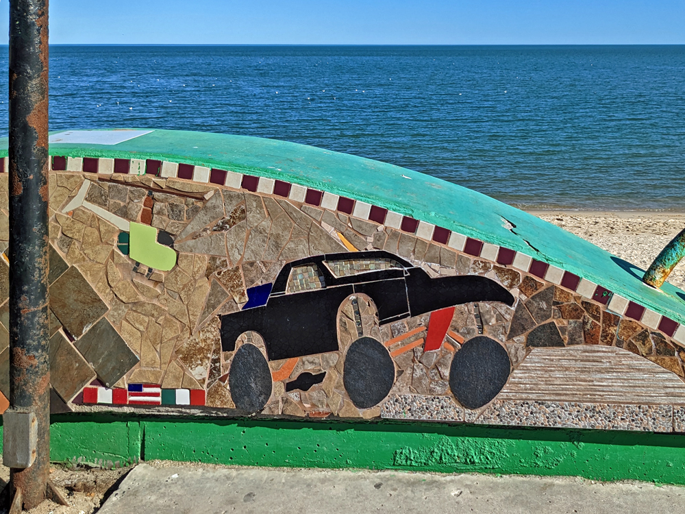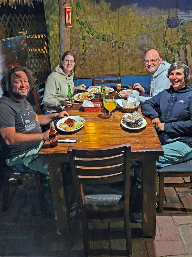 Wir geniessen die Aussicht aufs Meer und machen die Bekanntschaft von amerikanischen Overlandern (Mike und Diane Loosle, mit Schweizer Vorfahren, und «Runaway Rinaldis» Mike und Klare), die uns netterweise zu sich ans Feuer einladen, wo wir einen schönen Abend zusammen verbringen.