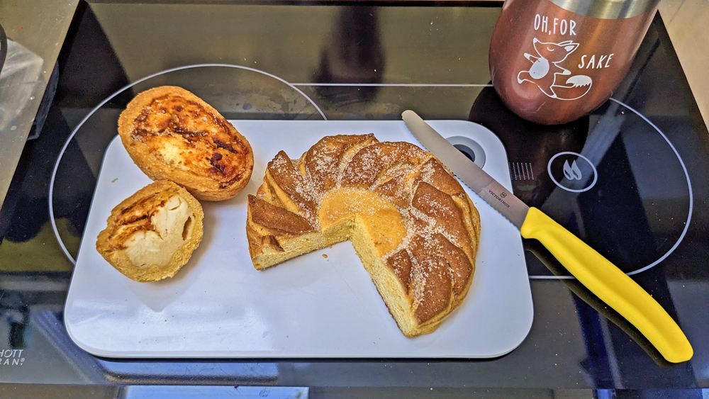 Bald sind wir in Guerrero Negro, wo wir nicht nur wieder im Restaurant Malarrimo fein essen gehen, sondern auch das erste Wal-Highlight erleben. Dieses Mal sind wir Anfang Februar da und buchen gleich beim Malarrimo Hotel/Campground/Tour-Anbieter eine Exkursion zur Ojos de Liebre-Lagune, wo sich die Grauwale paaren, und ihre Kälber bekommen. Die Wartezeit bis am nächsten Tag vertreibe ich mir damit, endlich unseren grossen Tisch zu reparieren, dessen Gummibänder sich in Alaska in Wohlgefallen aufgelöst hatten (es hat aber auch ein bisschen gedauert, bis Ozy die richtigen Ersatz-Gummibänder und Distanzhalter-Perlen gefunden hatte), und mit einem Spazieregang zur Bäckerei. Nur leider überstehen die etwas fragileren Süssteilchen den Rückweg nicht ganz unbeschadet – die ungepflasterten Nebenstrassen in Guerrero Negro bestehen aus einem salzigen Lehm, dem man schlüpfrige Stellen nicht ansieht…