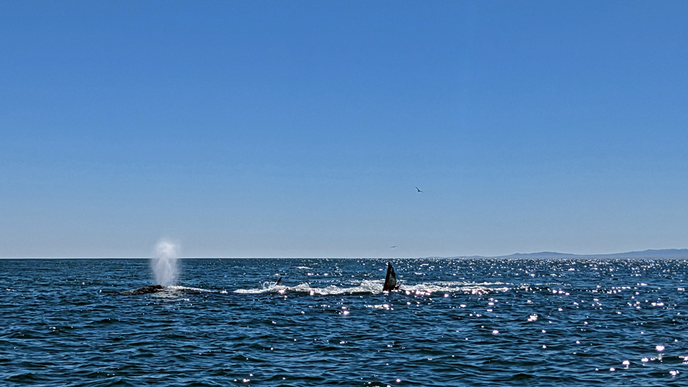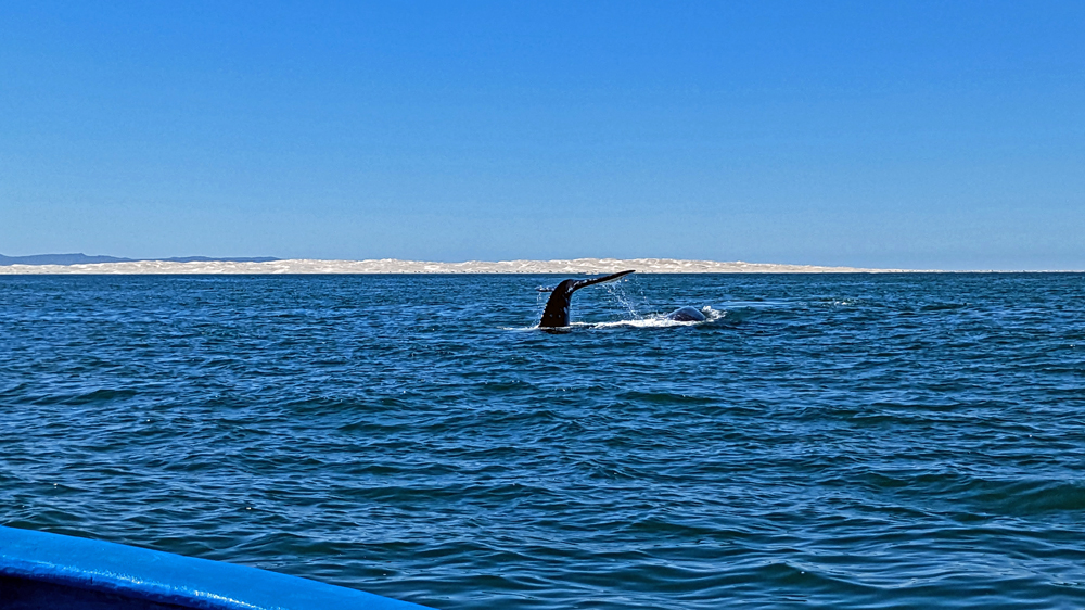 Es war toll, diese sich selten in Küstennähe aufhaltenden Tiere zu sehen. Allerdings waren wir nach unserem (Grau-)Wal-Nah-Erlebnis vor relativ kurzer Zeit etwas weniger beeindruckt, als wir es sonst sicher gewesen wären.