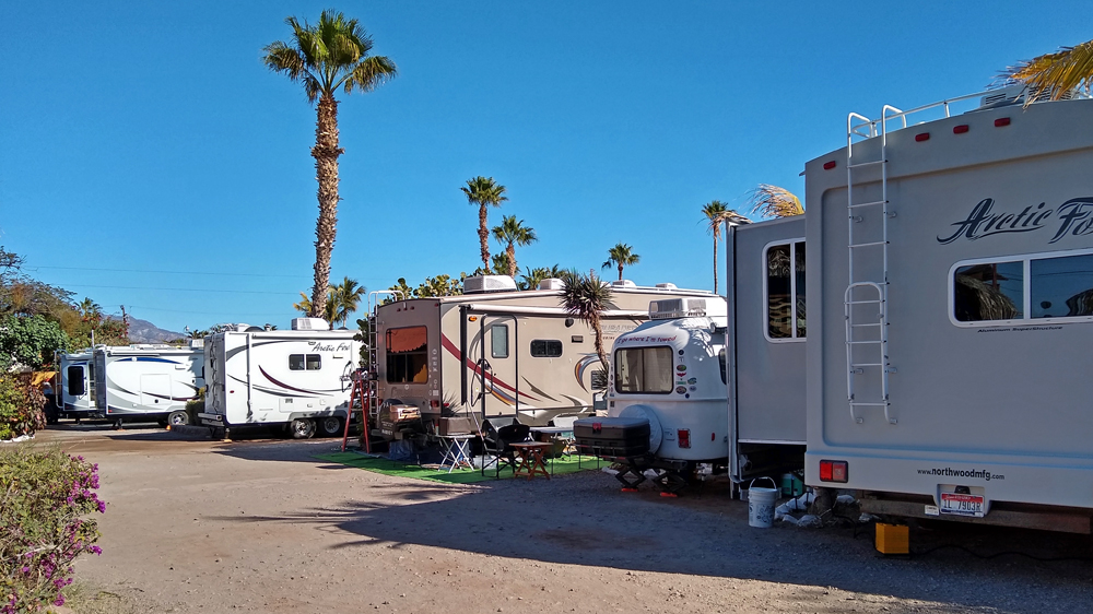 Auf dem Campground Rivera del Mar erwarten uns schon unsere Freunde Pat und Harvey, die wir vor drei Jahren hier kennengelernt hatten und letztes Jahr auf dem Rückweg von Alaska besucht hatten. Sie waren so lieb und haben uns einen Platz reserviert, denn Yolanda, die Betreiberin, ist fast komplett ausgebucht. Ständig kommen und gehen sogenannte «Karawanen», mehr oder weniger organisierte Gruppen von zusammenfahrenden amerikanischen oder kanadischen RVs.