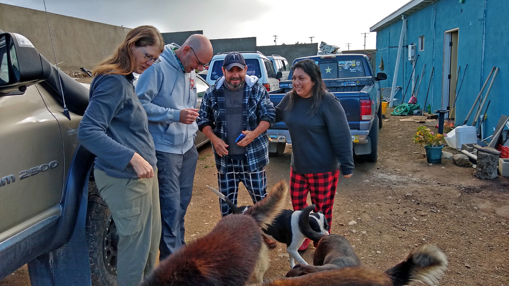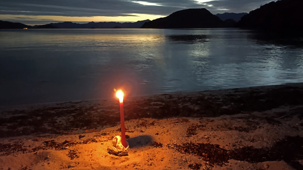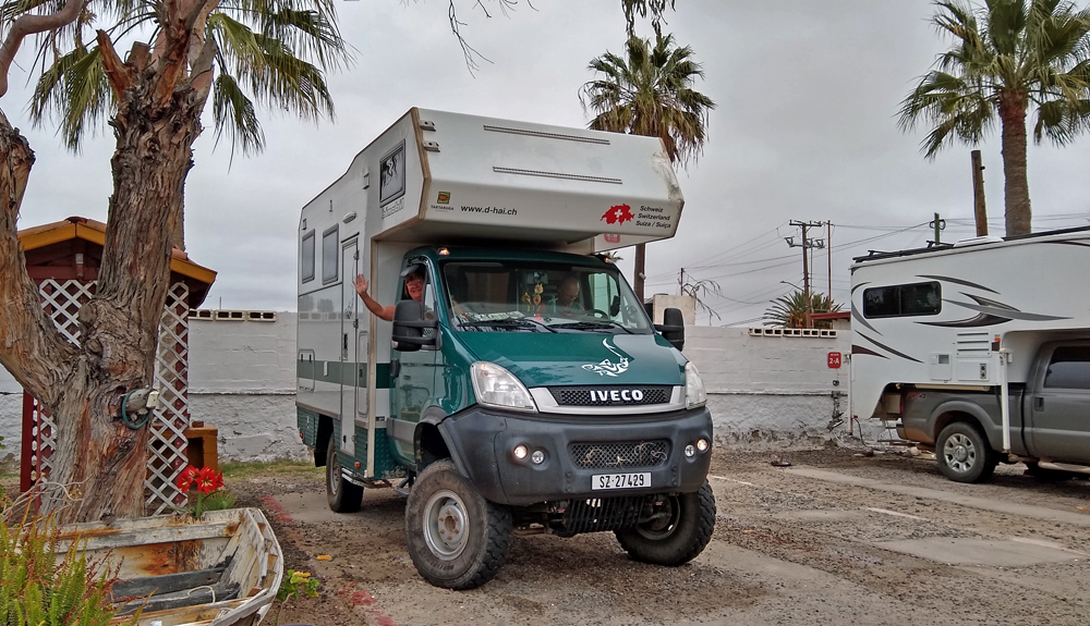 Als wir an der Playa Jimi ankommen, sind die Wale leider weg, dafür treffen wir nochmals auf Jürgen, diesmal mit seiner Frau Hilde, und lernen Manfred mit Rita und Actionmobil «Tonki» sowie Hans-Peter und Susanne mit «Henriette 2.0» und ihren beiden Rhodesian Ridgebacks Quappo und Frodo kennen. Mane ist der «weltbeste Feuermacher auf der Welt – und Umgebung!» und so geniessen wir fast jeden Abend das gemütliche Beisammensein am Lagerfeuer (ohne wäre es auch zu kalt…). Dieses Mal haben wir uns übrigens ans Ende des Arroyo gestellt, nahe beim Berg, so dass wir von den immer noch starken Nordwinden geschützt sind.
