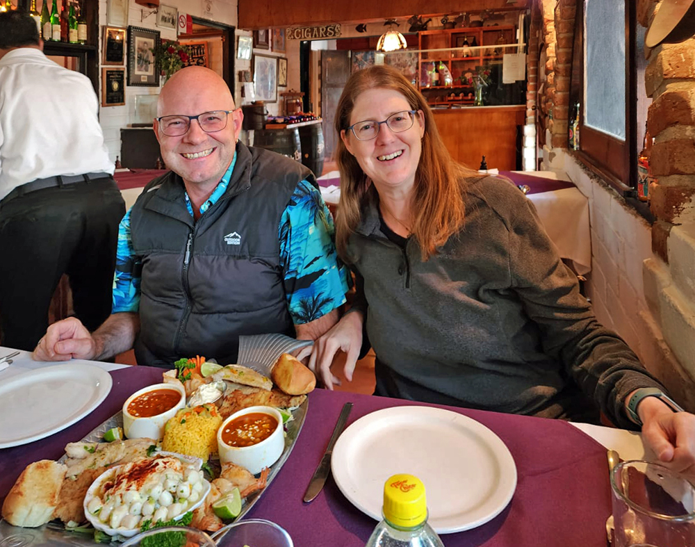 Unser Favorit ist allerdings der El Mezquite Grill, den uns Sibylle und Hermann angegeben haben, die den Platz, wenn ich mich richtig erinnere, wiederum von der Overlander-Familie «Meat around the World» hatten – da kann ja nichts schiefgehen! Und richtig: wir bekommen hier das beste Chateaubriand EVER! Das Gericht gibt es für zwei, drei oder vier Personen und das für umgerechnet CHF 25.- / Person! Es war so gut, dass wir am letzten Abend gleich nochmals dorthin gegangen sind… (die übrigen Gerichte sind übrigens auch gut, wie uns Claudia und Thomas versichert haben).