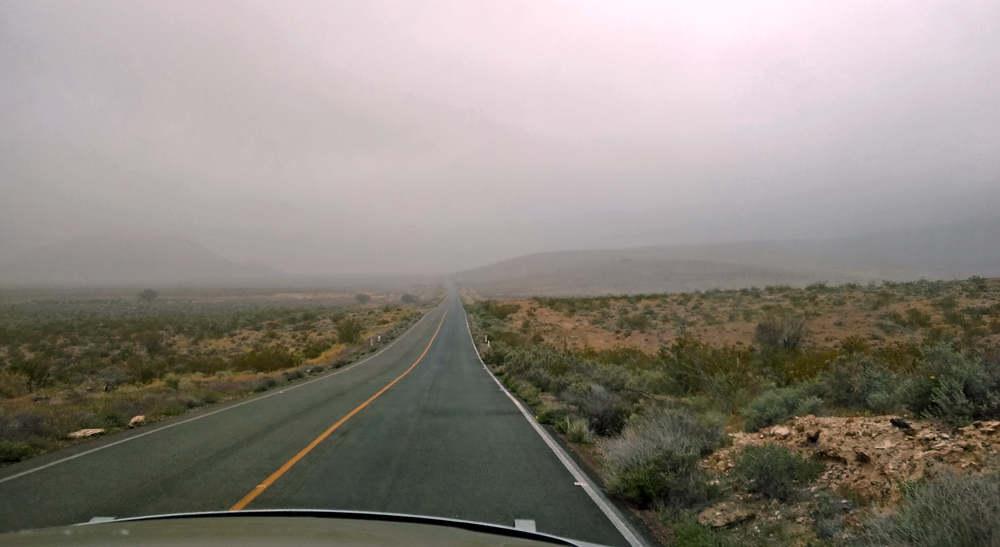 Nachdem das geschafft ist, geht es ins Gebirge, Richtung San Felípe (wir wollen nach Yuma zu unserem Freund Bill und die Grenze deshalb wieder in Mexicali East überqueren). Die MEX-3 führt zwischen der Sierra de Juárez im Norden und der Sierra de San Pedro Mártir im Süden durch die beiden Hochtäler Valle des Ojos Negros und Valle de la Trinidad. Die Strecke ist landschaftlich sehr schön und abwechslungsreich, aber bald stossen wir auf das nächste Hindernis: 4 Schwertransporte, die aufgrund der engen, kurvigen Strecke fast nicht zu überholen sind… Irgendwann ist aber auch das geschafft und wir fahren auf der schlechter werdenden Strasse, immer auf Schlaglöcher achtend, bis zur Ostküste. War es auf der anderen Seite und im Gebirge noch 8 Grad, lacht hier die Sonne und das Thermomenter zeigt freundliche 21 °C. Juhu!