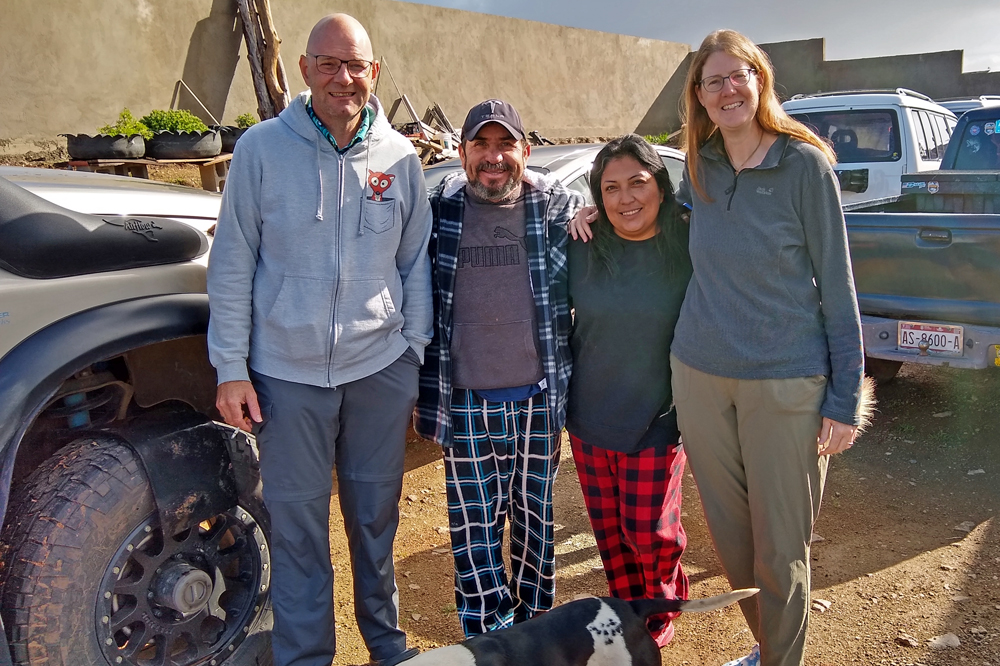 Wir sehen auf Polarsteps, dass auch Sibylle und Hermann gerade in Loreto sind, wenn auch auf dem Campground näher am Zentrum. Wir hätten ja nicht gedacht, dass wir sie nochmals treffen und  verabreden uns gleich für den nächsten Abend. Es wird ein richtiger Overlander-Znacht, denn sie bringen von ihrem Campingplatz gleich noch die Schweizer Zsolt und Emese (Team Bodyduck) sowie das Deutsche Paar Kathrin und Hans-Jürgen (otto-mobil) mit (leider fehlt Thomas, dem es gerade nicht so gut geht). Es wird ein vergnüglicher Abend mit vielen Reisegeschichten im El Zopilote Brewing Co. am Hauptplatz.