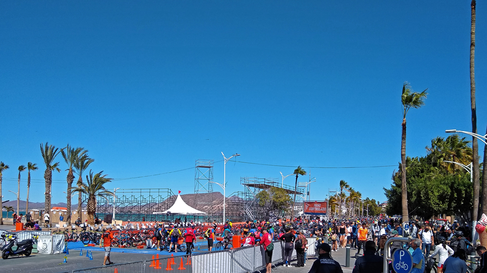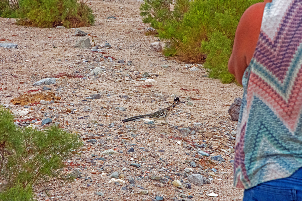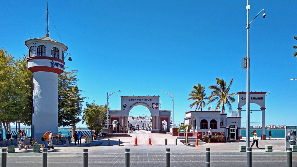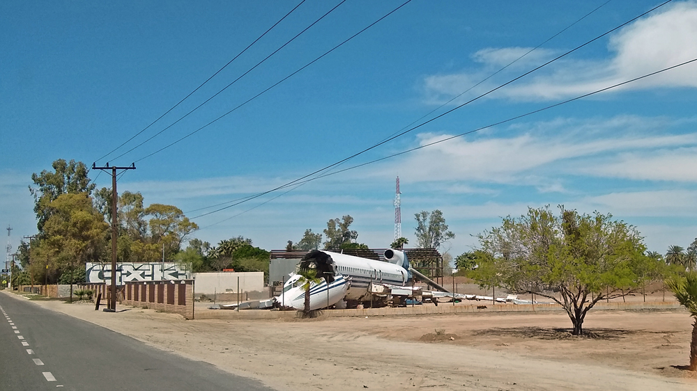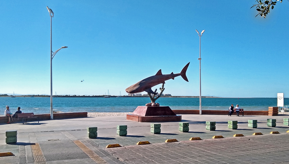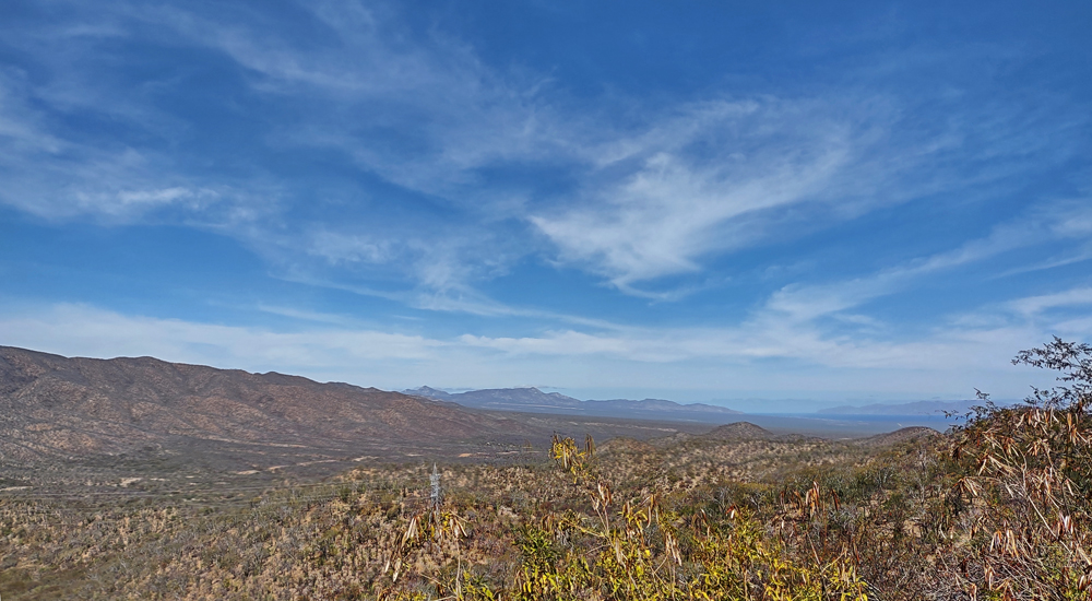 Kurz vor La Ribera treffen wir Annens nochmals zum gemeinsamen Reifen-Aufpumpen, denn ab hier ist die Strasse wieder geteert. Die Fahrt geht bald noch etwas flotter voran, denn wenig später treffen wir beim Ort mit dem klingenden Namen Colonia María Sandéz Viuda de González wieder auf die MEX-1, die uns zuerst nach Los Barriles an der Küste und von da in zahlreichen Kurven durch die nördlichen Ausläufer der Sierra de la Laguna nach La Paz führt. Wir müssen uns erst wieder ans dortige Verkehrschaos gewöhnen, das durch grosse Baustellen nicht gerade besser wird, und uns einen (wie wir feststellen sehr ungünstigen Weg) zu unserem Übernachtungsplatz suchen.