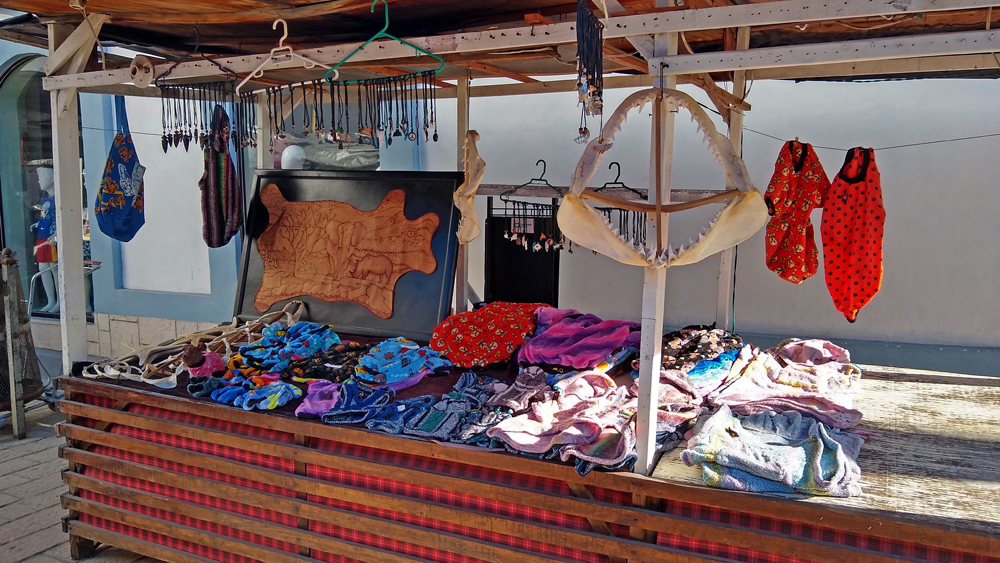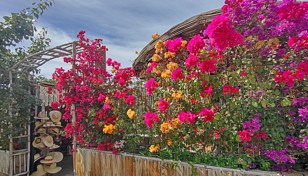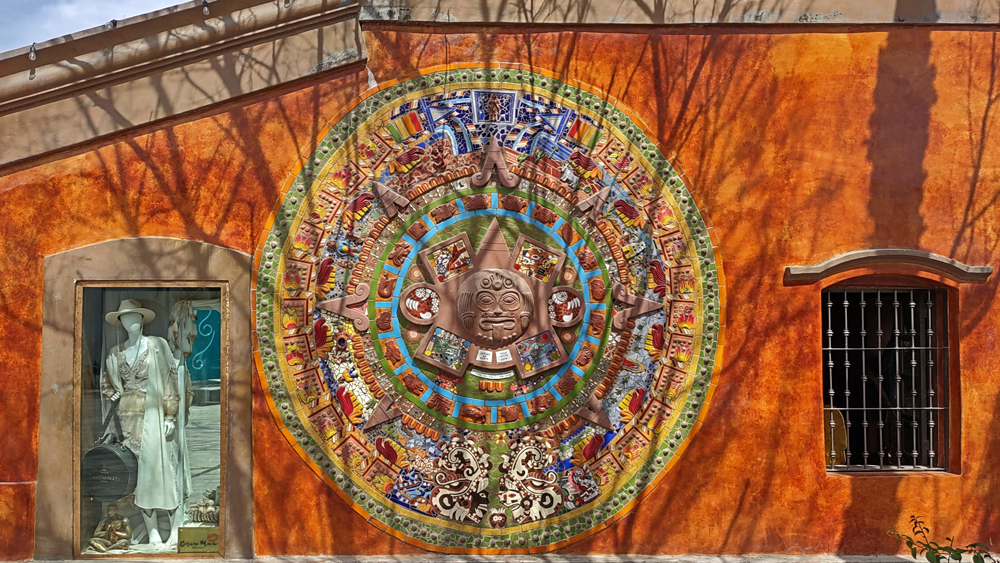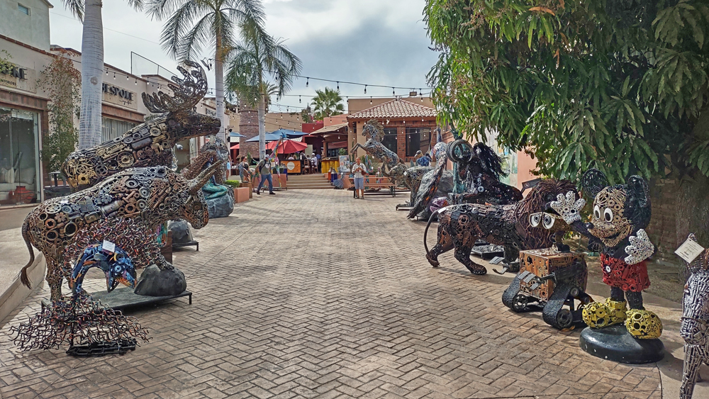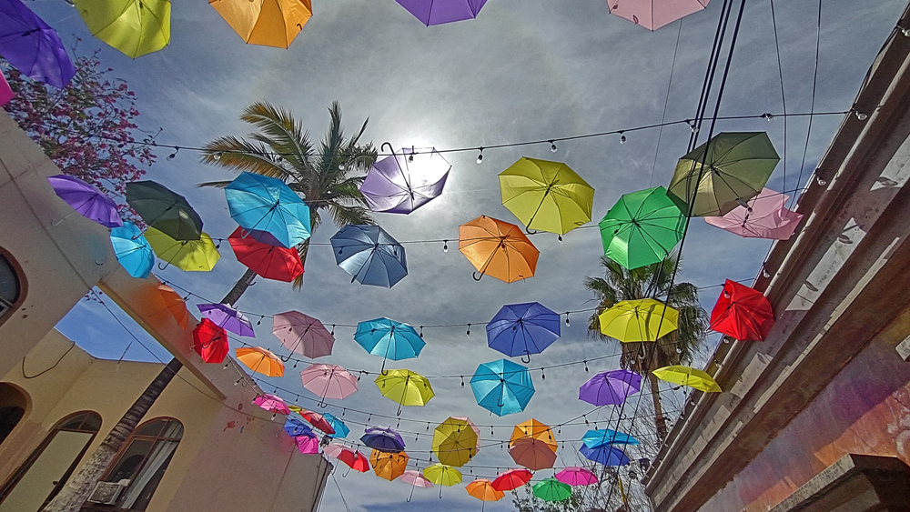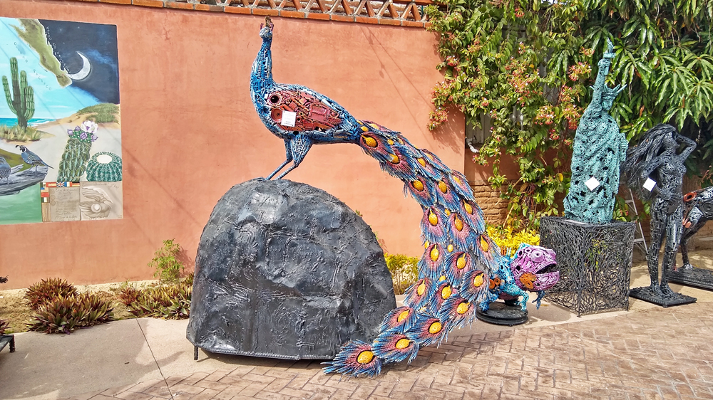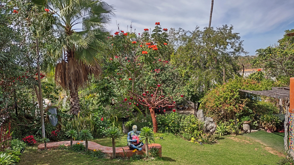Nun geht es auf einer guten Strasse diagonal über die Insel nach Todos Santos, einem Städtchen an der Pazifikküste. Sibylle und Hermann führen uns durch den hübschen, wenn auch recht touristischen Ort. Wir gucken uns den Hauptplatz mit der ehemaligen Mission an, den hübsch dekorierten Garten des Bésame Mucho Bazar (in den Laden hinein schaffe ich es nicht – sie lieben Räucherstäbchen…), einen Kunsthandwerkermarkt und das Hotel California, das nichts mit den Eagles zu tun hat, aber trotzdem vom gleichnamigen Song profitiert.
