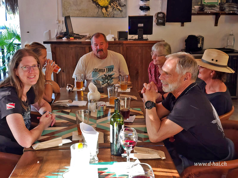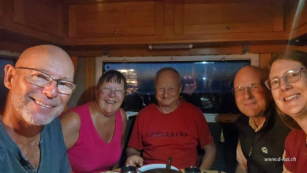 Neben dem Wal-, Wellen- und Sonnenuntergang-Gucken geniessen wir die Gespräche mit unseren Reisefreunden, das gemeinsame Kochen und Essen mit Sibylle und Hermann und das anschliessende Zusammensitzen im D-Hai. Es ist einfach eine rundum schöne und friedliche Woche!