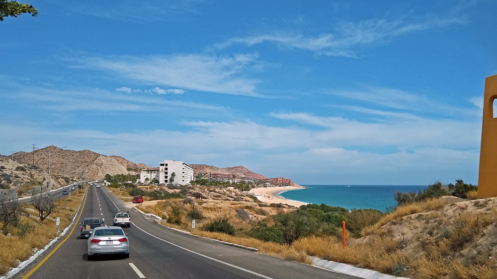 Einkaufen sollten wir ja auch mal wieder, also geht es Richtung Los Cabos, wie der touristische Süden der Baja California genannt wird. Je weiter wir Richtung Cabo San Lucas kommen, desto dichter ist die Küste mit Resorts bebaut und bald sieht es so aus wie irgendwo am Mittelmeer oder um Cancún.