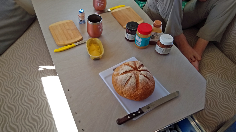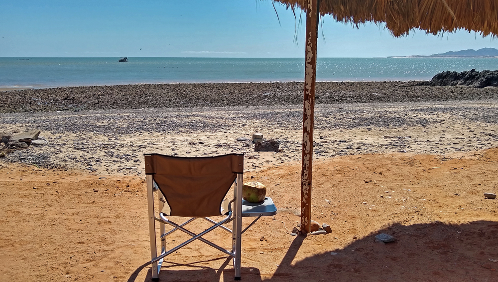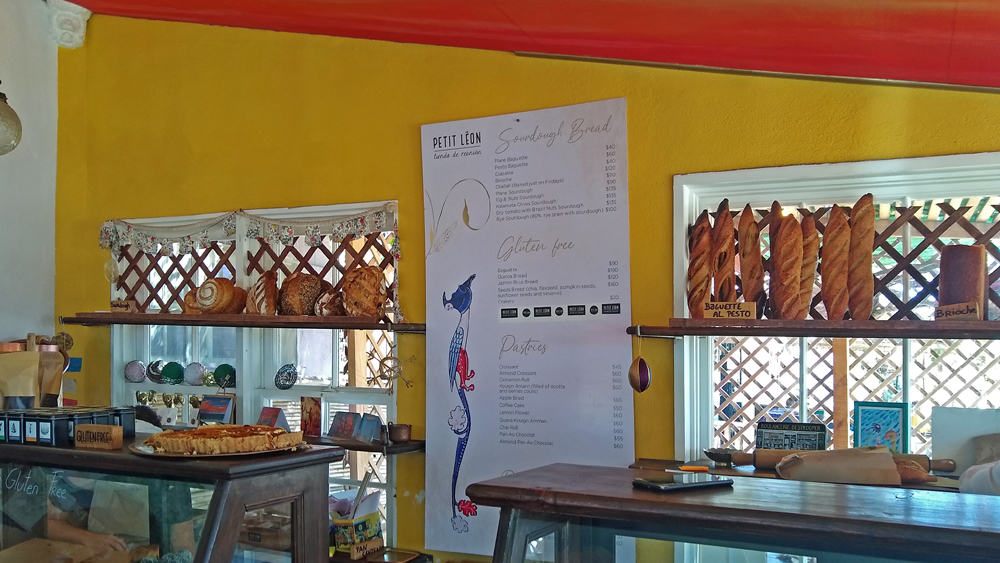 Uns hatte es auf der Playa Jimi so gut gefallen, dass wir nochmals für eine Woche dorthin fahren, um uns von La Paz zu erholen 😉. Auf dem Weg wird wieder in El Pescadero Wasser gefasst und ich gerate in der dortigen französischen Bäckerei Petit Leon in einen Kaufrausch… Die Croissants, Pains au Chocolat etc. sind gut, aber für meinen Geschmack ein bisschen zu fettig. Aber das ist Jammern auf hohem Niveau und schliesslich hatten wir schon lange mehr kein französisches Gebäck mehr!