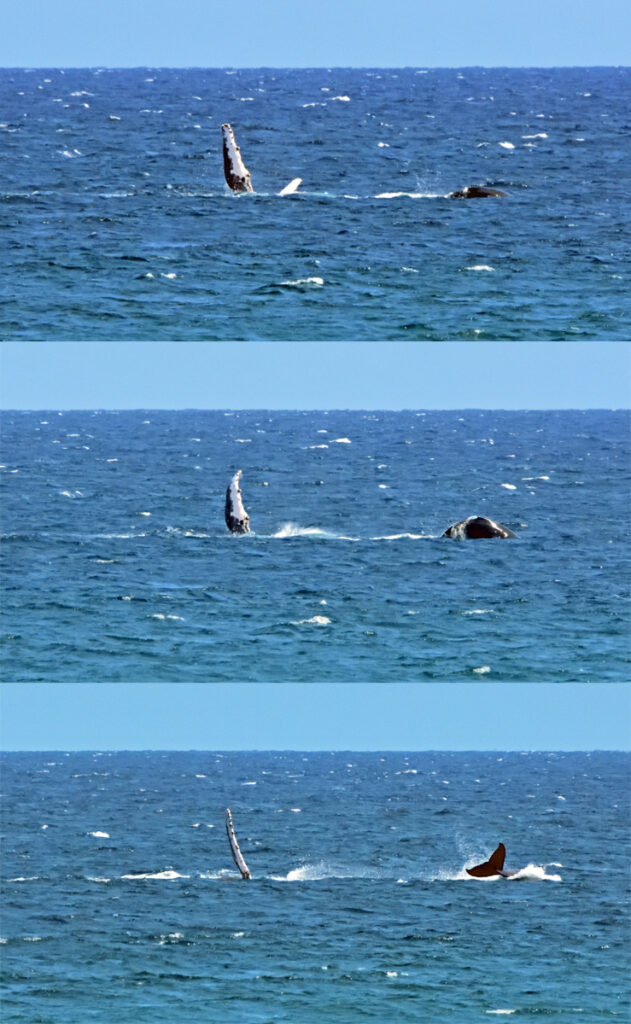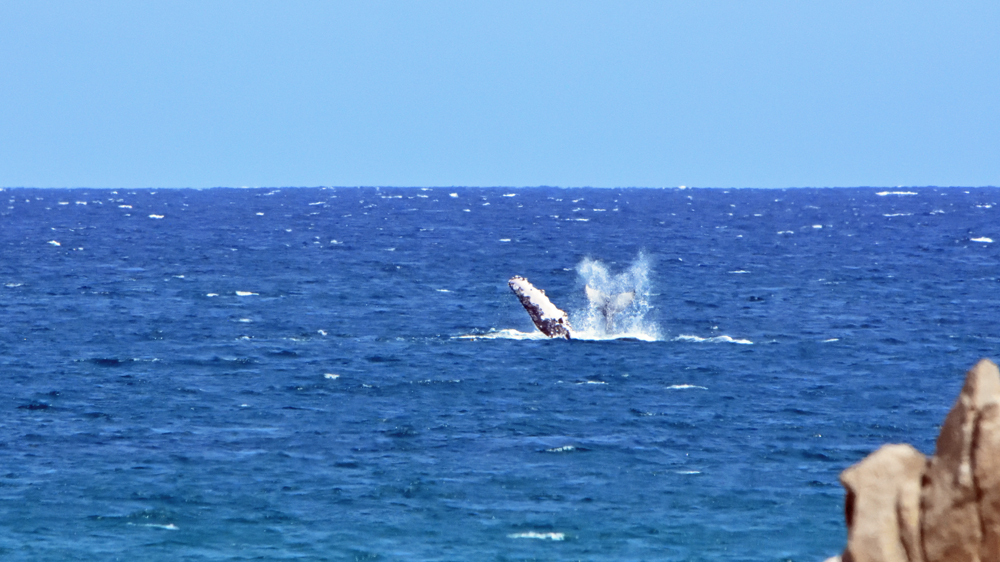 Annens führen uns zum Strand Boca de las Palmas II, wo wir die nächsten drei Nächte verbringen. Wir sind – abgesehen von zwei, drei anderen Stand-up Paddlern und zwei Hunden, von denen nicht klar ist, ob und wem sie gehören – alleine. Herrlich! Das Meer ist wieder wunderschön, die Temperaturen für mich aber immer noch zu kalt, um baden zu gehen. Dafür können wir auf dieser Seite die Buckelwale beobachten. Hier scheint es vor allem Mütter mit Kälbern zu haben, die miteinander spielen, herumtollen und aus dem Wasser springen! Es ist einfach unglaublich!!!