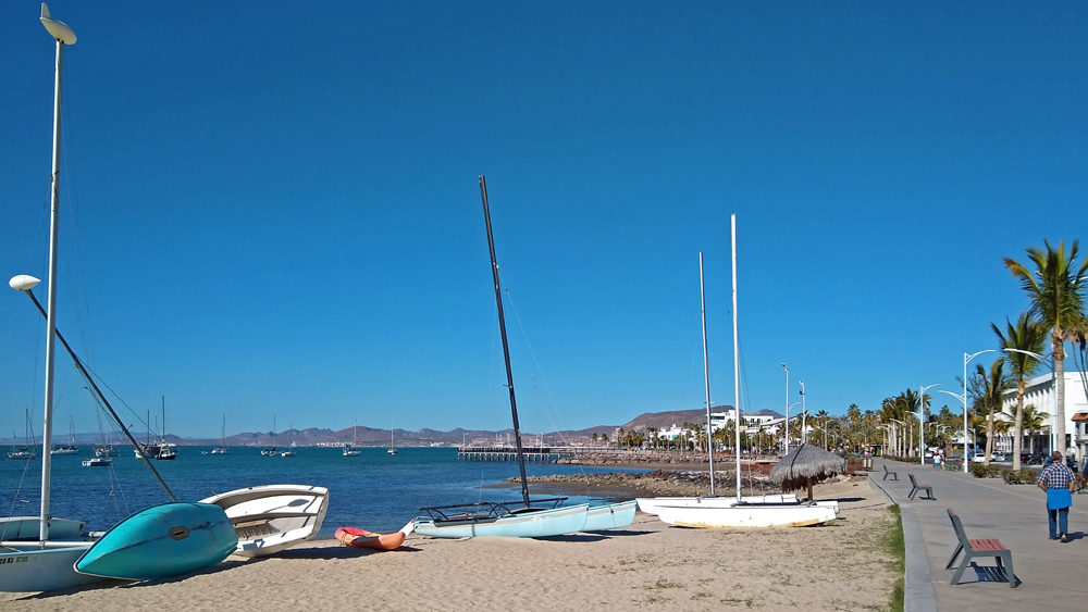 La Paz hat uns super gut gefallen, aber nach vier Tagen zieht es uns dann doch nochmals an den Strand (das Stadtleben mit Shoppen, Übernachten und Auswärts-Essen hinterlässt Spuren – in der Brieftasche und auf der Waage…). Wir verabschieden uns für vorerst längere Zeit von Claudia und Thomas – sie werden noch länger in La Paz und auf der Baja bleiben, aber wir hoffen, dass wir uns in den USA oder auf der Baja wiedertreffen!