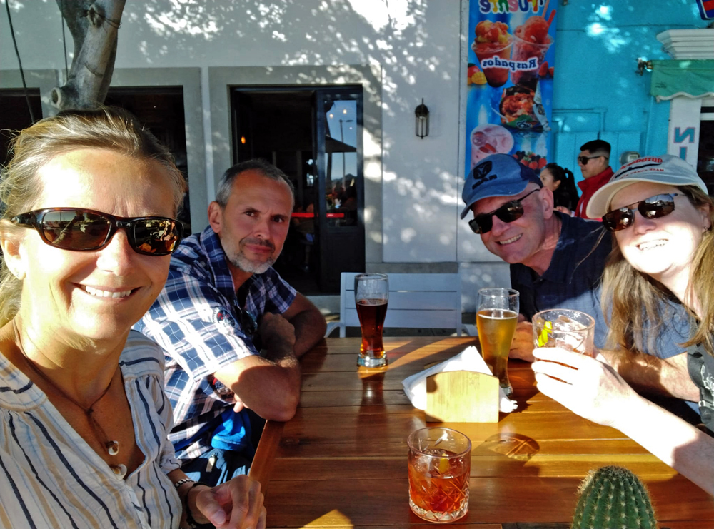 Der nächste Halt ist in San José del Cabo, wo auch Sibylle und Hermann noch nicht gewesen sind. Claudia und Thomas stossen auch dazu und wir machen zu sechst einen Bummel durch das hübsche Städtchen voller Restaurants, Bars und Kunst(handwerks)-Gallerien. Wir entdecken den La Ramona Beergarden, wo wir in einem hübschen Innenhof fein «linnern» (mittlerweile ist es drei Uhr), bevor es Richtung Strand geht.
