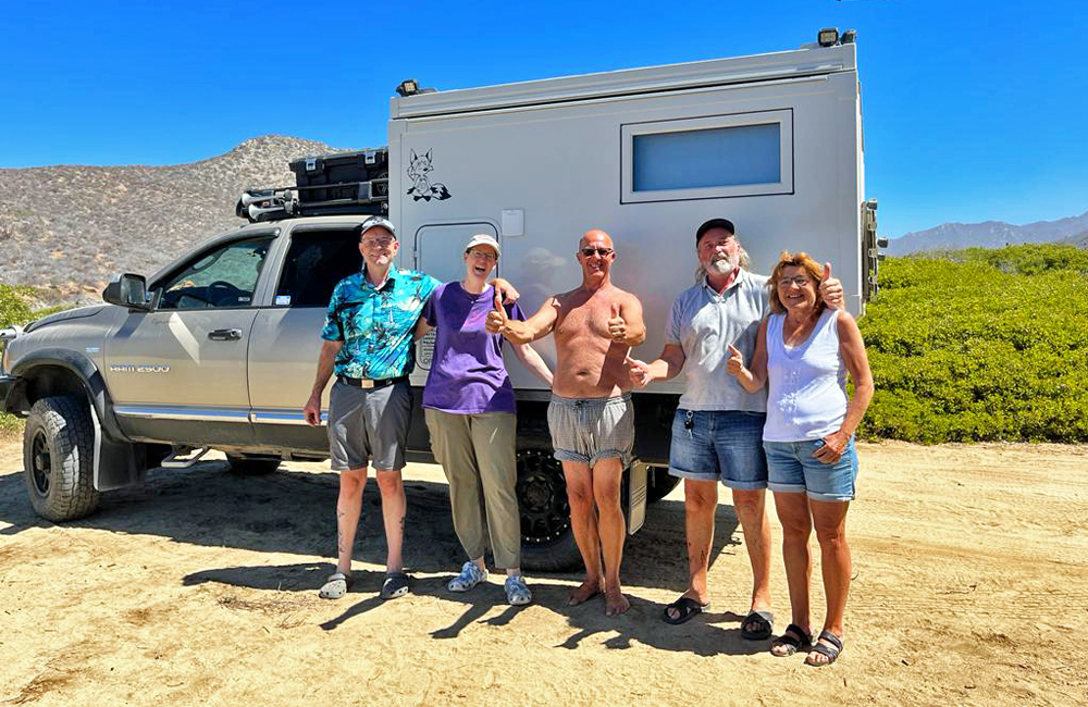 Wir sehen auf Polarsteps, dass auch Sibylle und Hermann gerade in Loreto sind, wenn auch auf dem Campground näher am Zentrum. Wir hätten ja nicht gedacht, dass wir sie nochmals treffen und  verabreden uns gleich für den nächsten Abend. Es wird ein richtiger Overlander-Znacht, denn sie bringen von ihrem Campingplatz gleich noch die Schweizer Zsolt und Emese (Team Bodyduck) sowie das Deutsche Paar Kathrin und Hans-Jürgen (otto-mobil) mit (leider fehlt Thomas, dem es gerade nicht so gut geht). Es wird ein vergnüglicher Abend mit vielen Reisegeschichten im El Zopilote Brewing Co. am Hauptplatz.