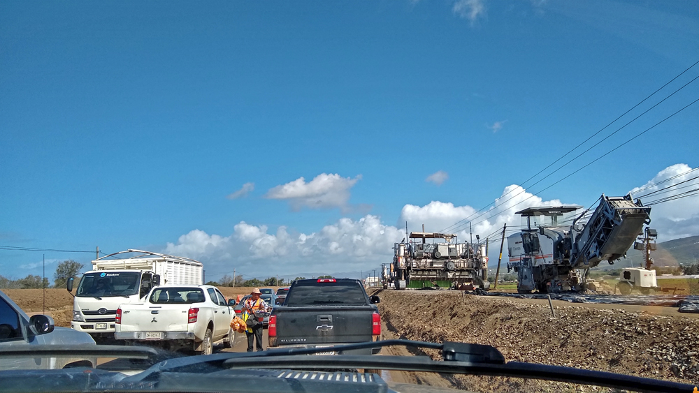 Am nächsten Morgen scheint die Sonne und die Welt sieht zum Glück wieder ganz anders aus! Wir verabschieden uns von den beiden (und ihren zahlreichen Hunden) und fahren nach Maneadero einkaufen. Von dort brauchen wir mehr als eine Stunde, um Ensenada zu durchqueren – eine Brücke und ein Teil der Strasse werden ersetzt und es hat einen kilometerlangen Stau. Immerhin scheint die Sonne und wir haben zum Glück keine besondere Eile.