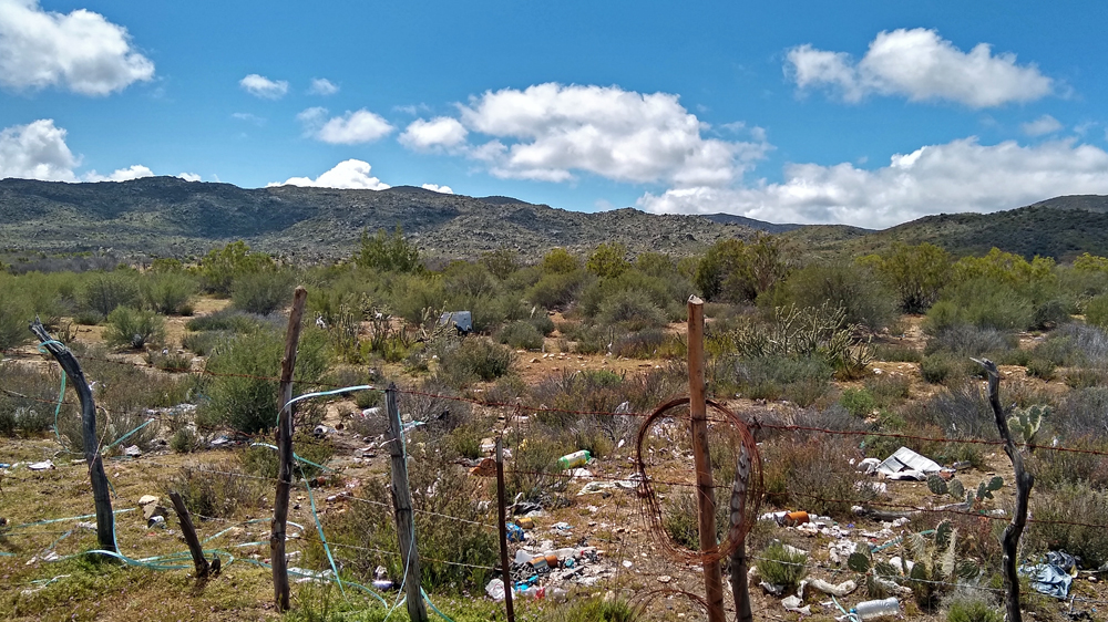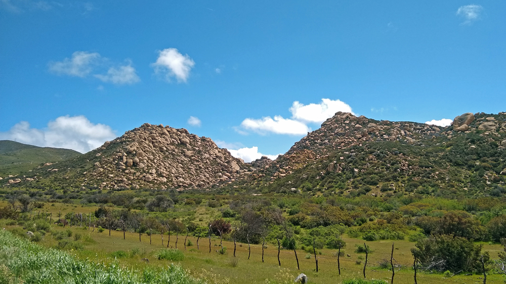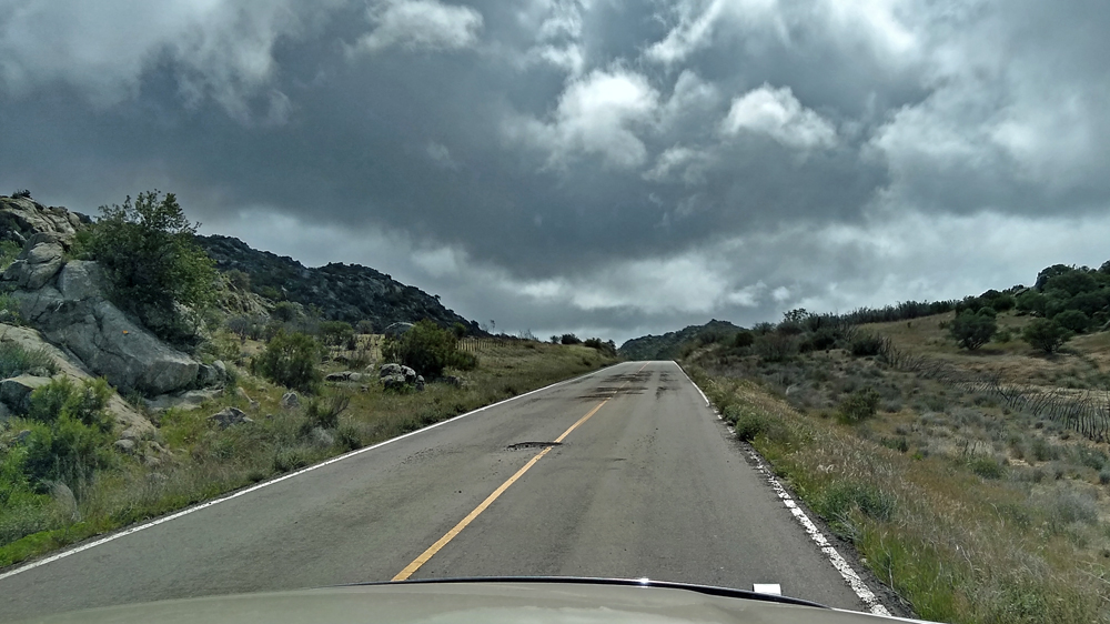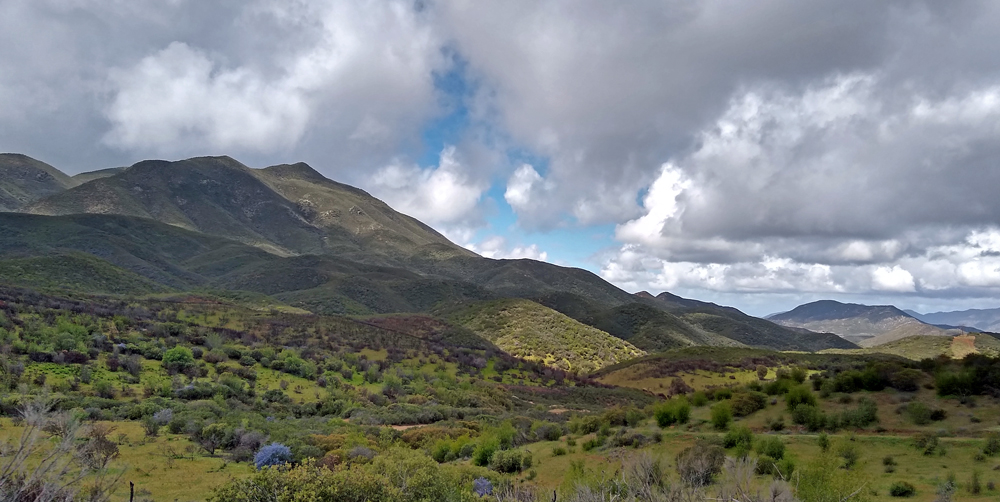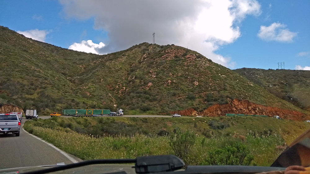 Bei Chapala fahren wir dieses Mal nicht auf die MEX-5 Richtung San Felípe, sondern bleiben auf der «alten», berühmt-berüchtigten MEX-1, weil wir ja noch unsere Freunde Ricardo und Eliz in La Bufadora bei Ensenada besuchen wollen. Die Strasse ist immer noch gleich schlimm wie wir sie in Erinnerung hatten und das schlechte Wetter hilft auch nicht. Immerhin blüht es dieses Mal und alles ist so grün, wie wir es noch nie gesehen hatten.
