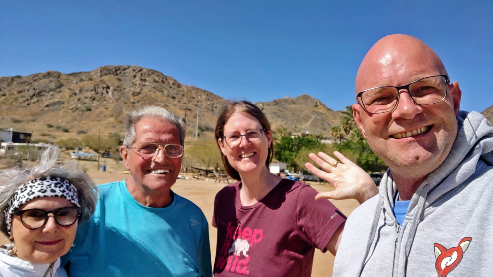 Am nächsten Tag müssen wir leider weiter, da wir noch ein bisschen Zeit an der Bahía Concepción verbringen möchten. Als schöner Abschluss gehen wir zuammen mit Pat und Harvey sowie Claudia und Thomas am nächsten Mittag nochmals ins Del Borrachos essen. Es war schön, Euch alle nochmals zu sehen!