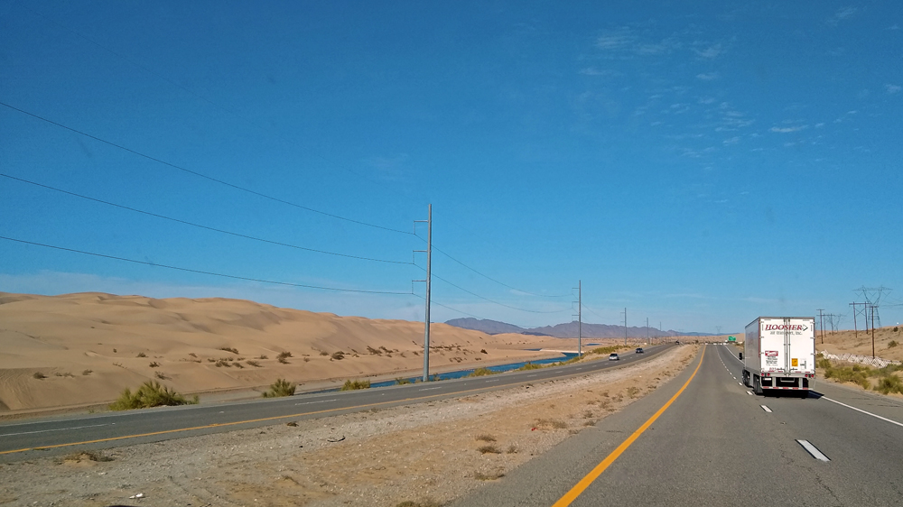 Der Herr meint, wir könnten es im Alvord Street Mini Mart versuchen, wieder so ein kleiner Shop, der Checks einlöst. Don brauchen wir dazu nicht mehr (nochhmals vielen Dank!), so dass er sich schon auf den Weg zu den Trona Pinnacles machen kann, wo er heute übernachten wird. Und wir machen den aller-, allerletzten Versuch, diesen Check einzulösen. Und es sieht schlecht aus…