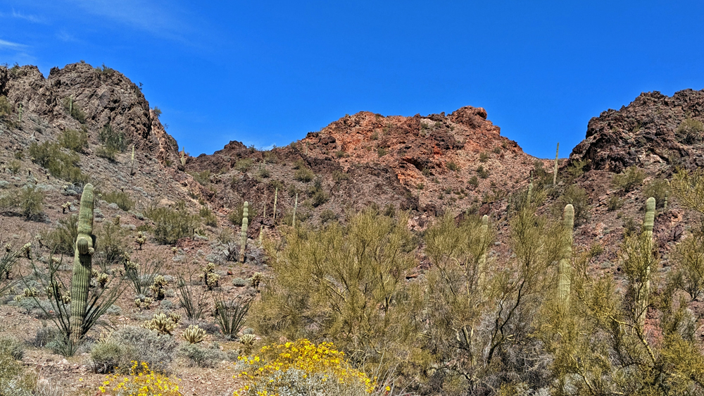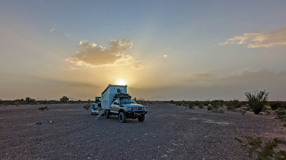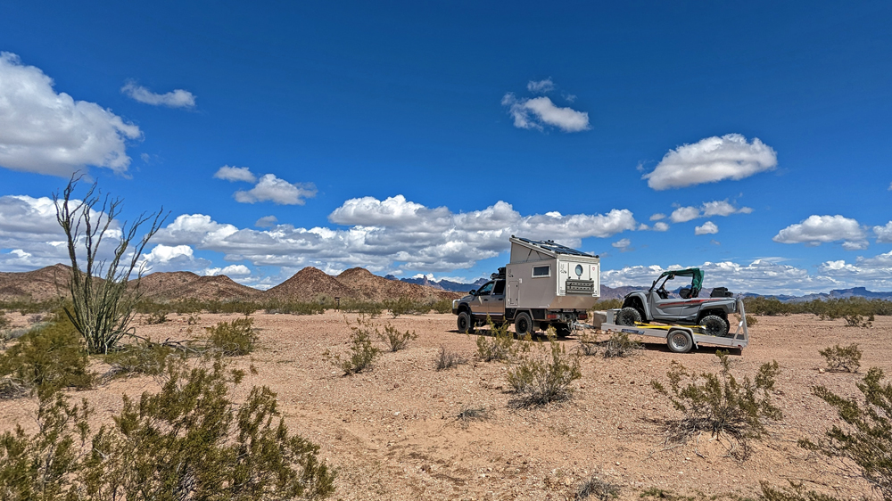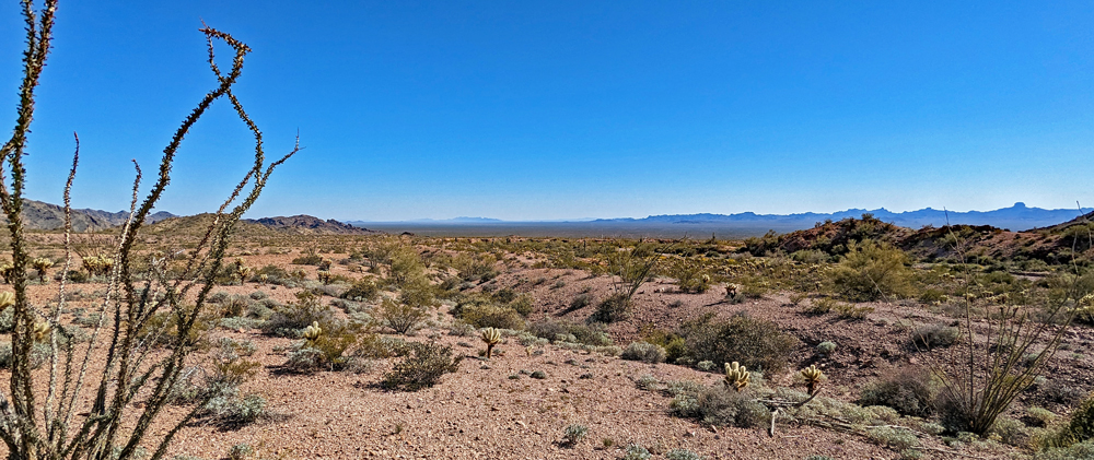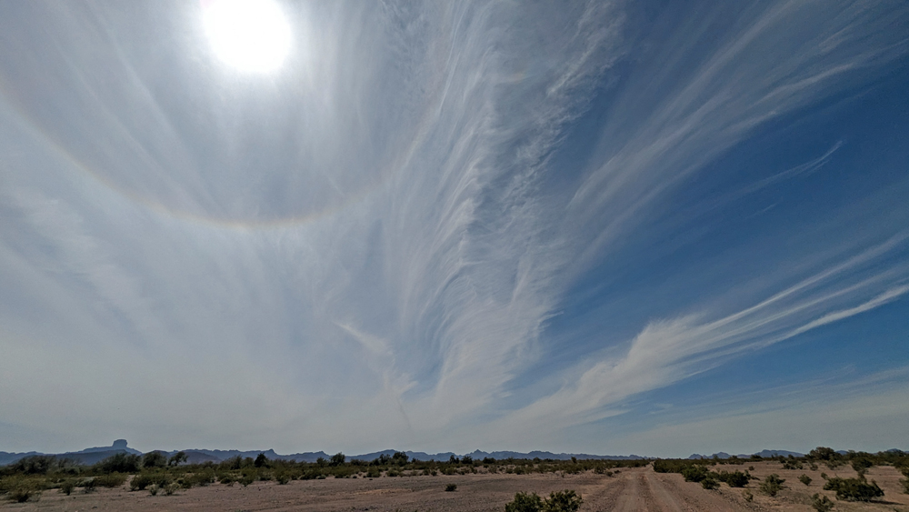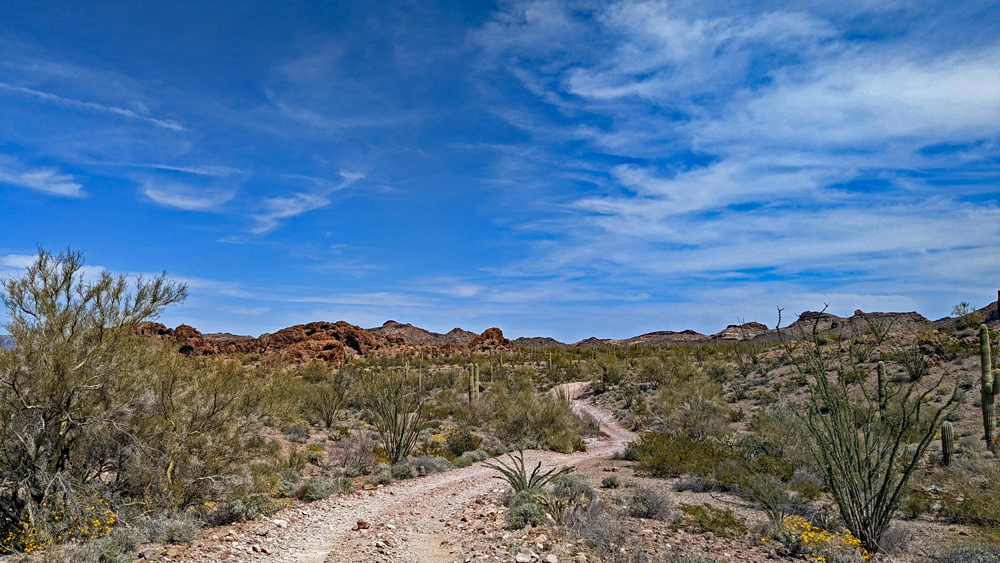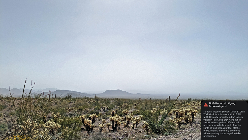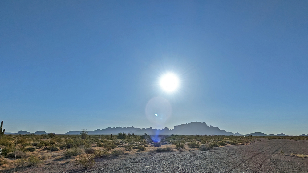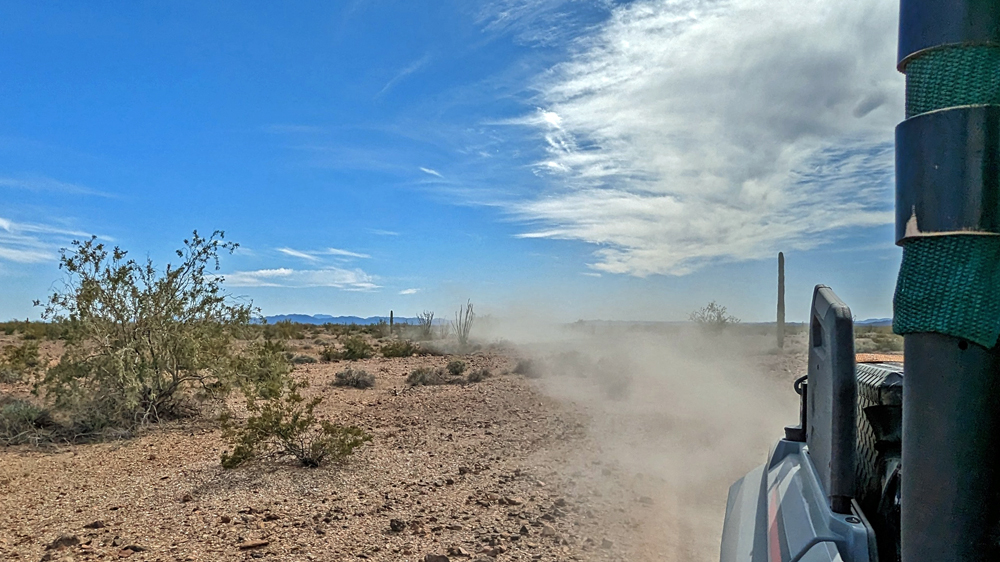 Am nächsten Tag hat sich der Sturm verzogen und es ist nur noch etwas dunstig. Wir fahren wieder zu Bill, um ihm das Side-by-Side zurückzugeben. Er meint jedoch, wir sollten es doch noch etwas behalten! So cool! Da wir uns in etwa einer Woche sowieso mit ihm und Don in Ballarat treffen wollen, einigen wir uns darauf, dass wir es gleich dorthin mitnehmen. Also Vorräte auffüllen und zurück ins Kofa NWR, wo uns noch die nördliche Hälfte fehlt, die wir nun während der nächsten vier Tage «er-fahren».
