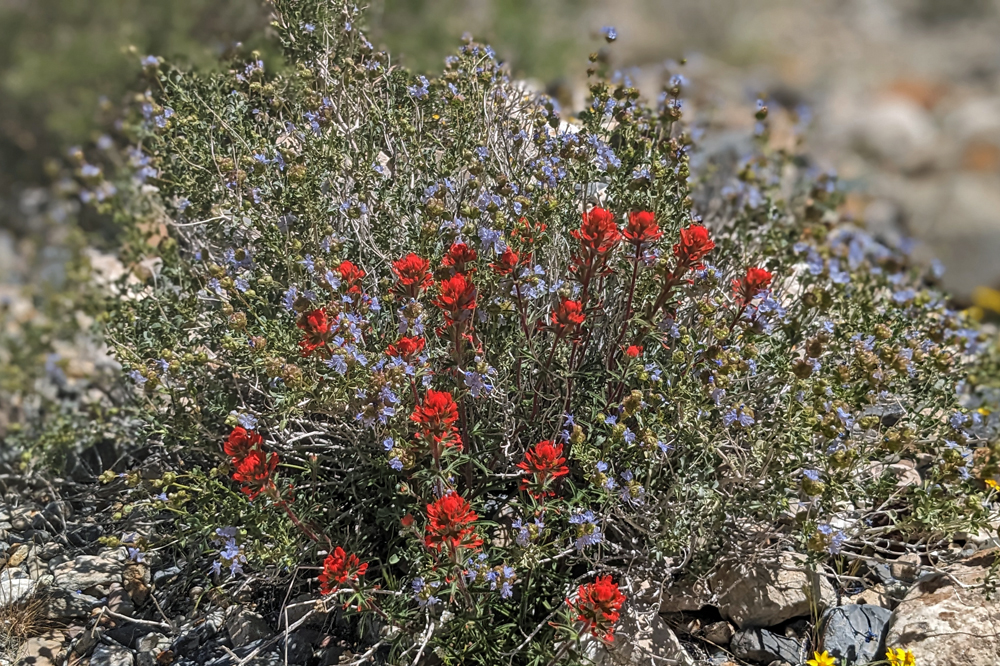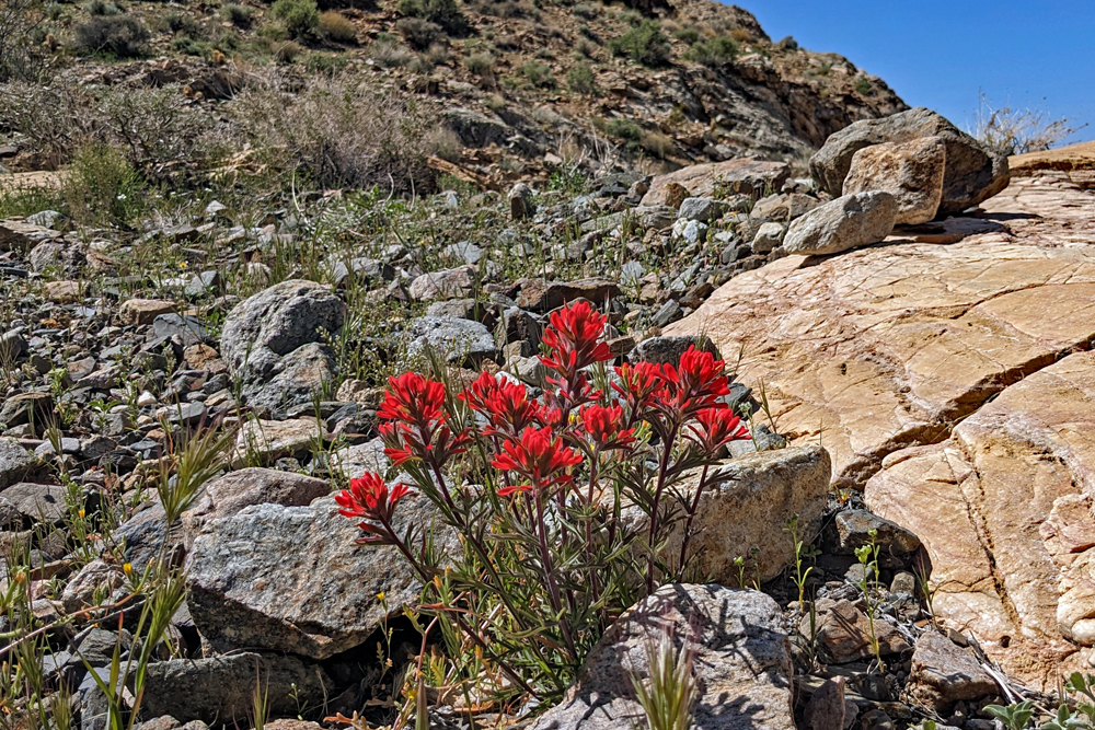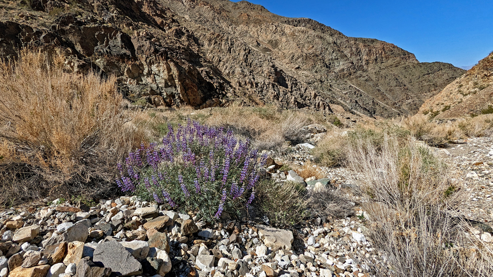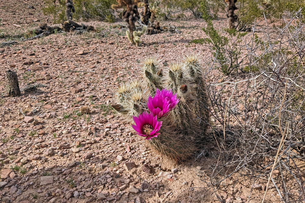 Das Highlight sind aktuell aber sowieso die Pflanzen. Dank der aussergewöhnlichen Niederschläge diesen Winter können wir uns an zahlreichen blühenden Kakteen und vor allem auch an einer grossen Fülle an Wildblumen erfreuen. Alle Farben sind vertreten: von grünlich-weiss über alle möglichen Gelbtöne, orange, rot, pink und lila bis zu blau. Ich kann mich nicht sattsehen und Ozy muss immer wieder anhalten, damit ich hinausspringen und Fotos machen kann. Es ist einfach nur schön!!!