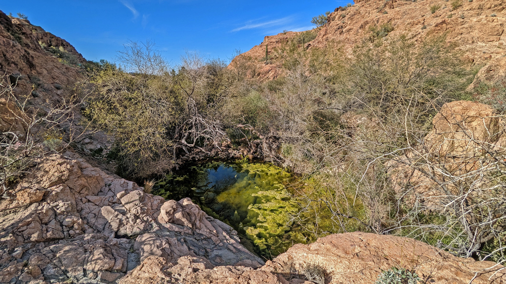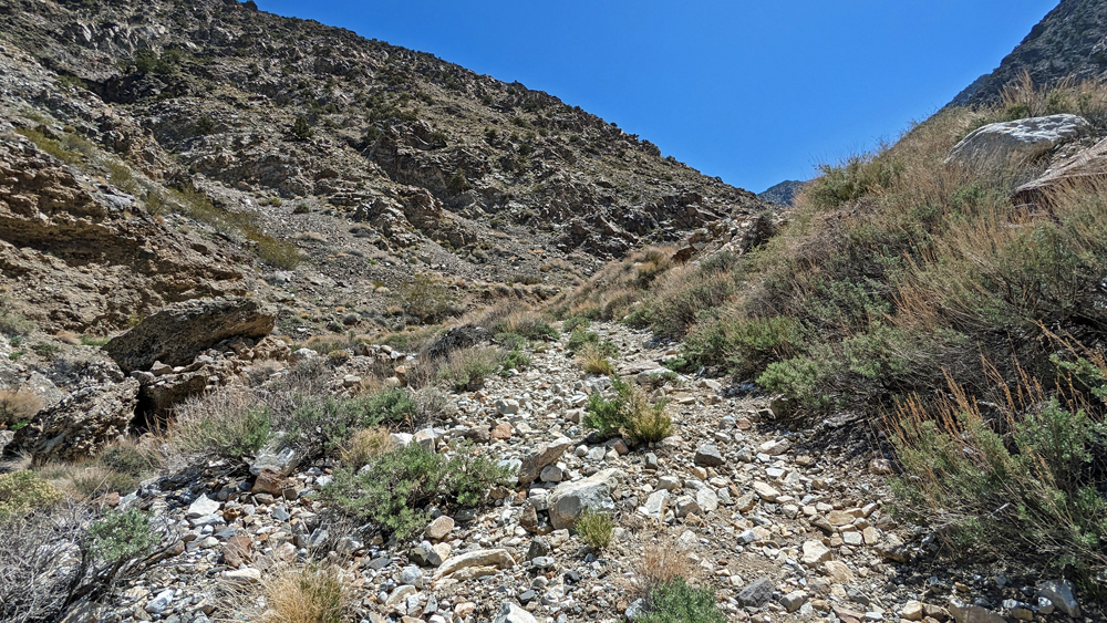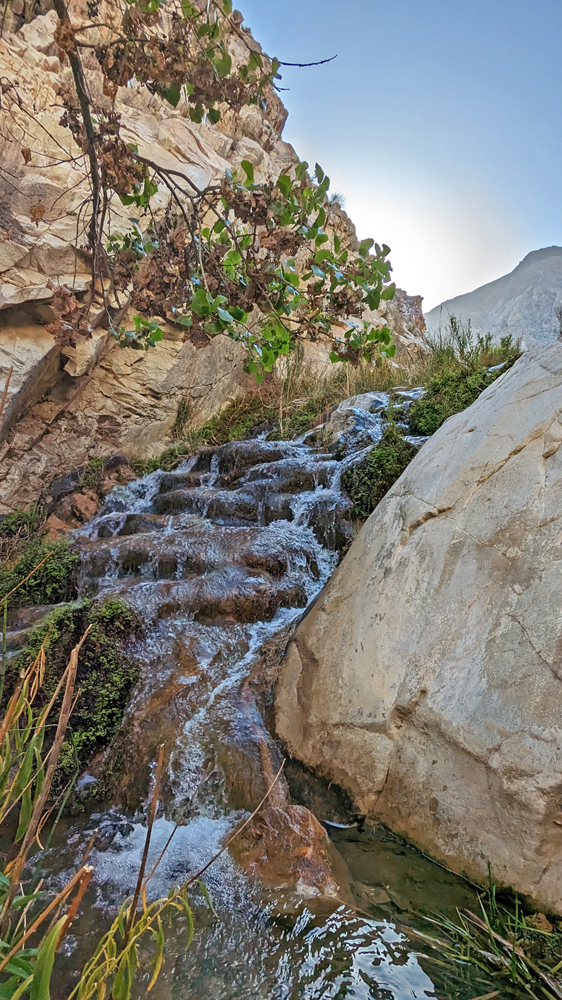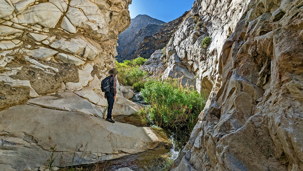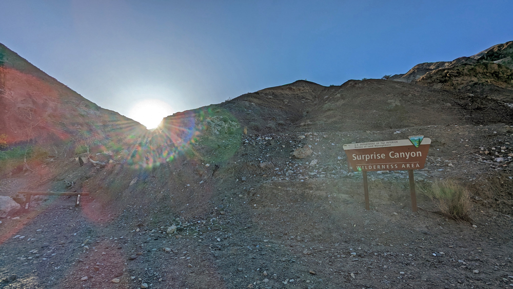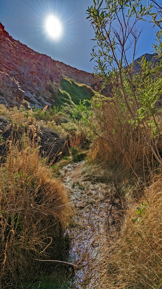 Gino und ich machen zudem noch eine Monster-Wanderung durch den Surprise Canyon zur ehemaligen Silber-Minenstadt Panamint City, etwas, das ich schon lange mal machen wollte, mich alleine aber nie getraut habe. Alle im Camp hatten uns prophezeit, dass wir nicht einmal das erste Drittel des rund 8.5 km / 5.2 mi langen Wegs zur ehemaligen Stadt schaffen würden, da dieser durch den engsten Teil des Surprise Canyon mit viel Wasser, Sumpf und Wasserfällen (ja, in der Wüste!) führt.