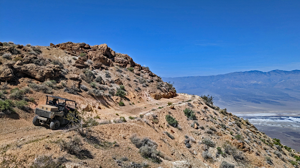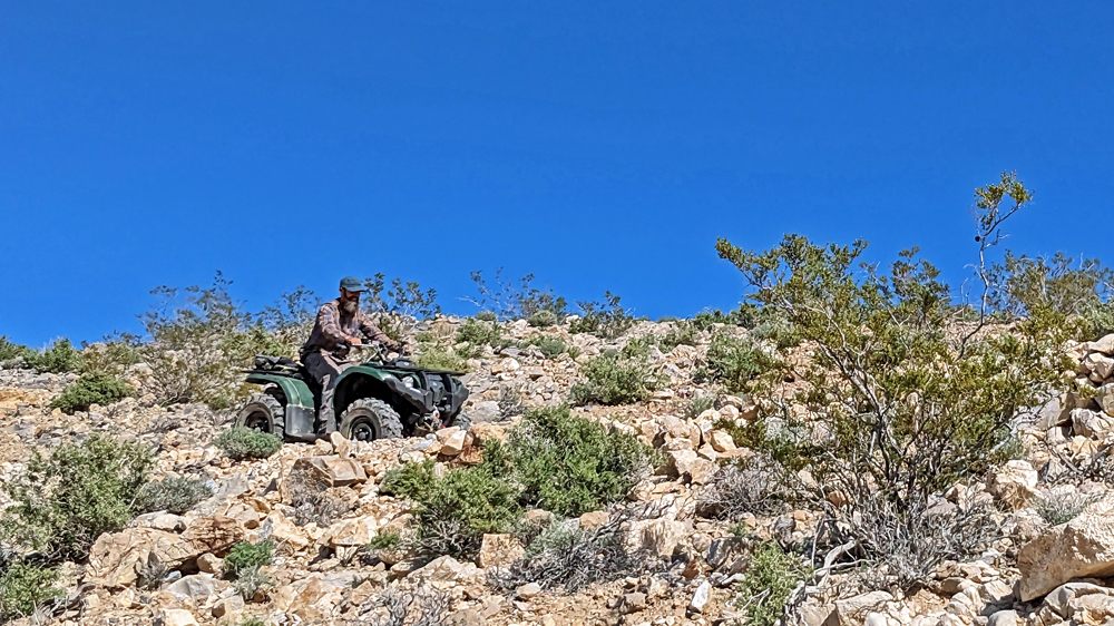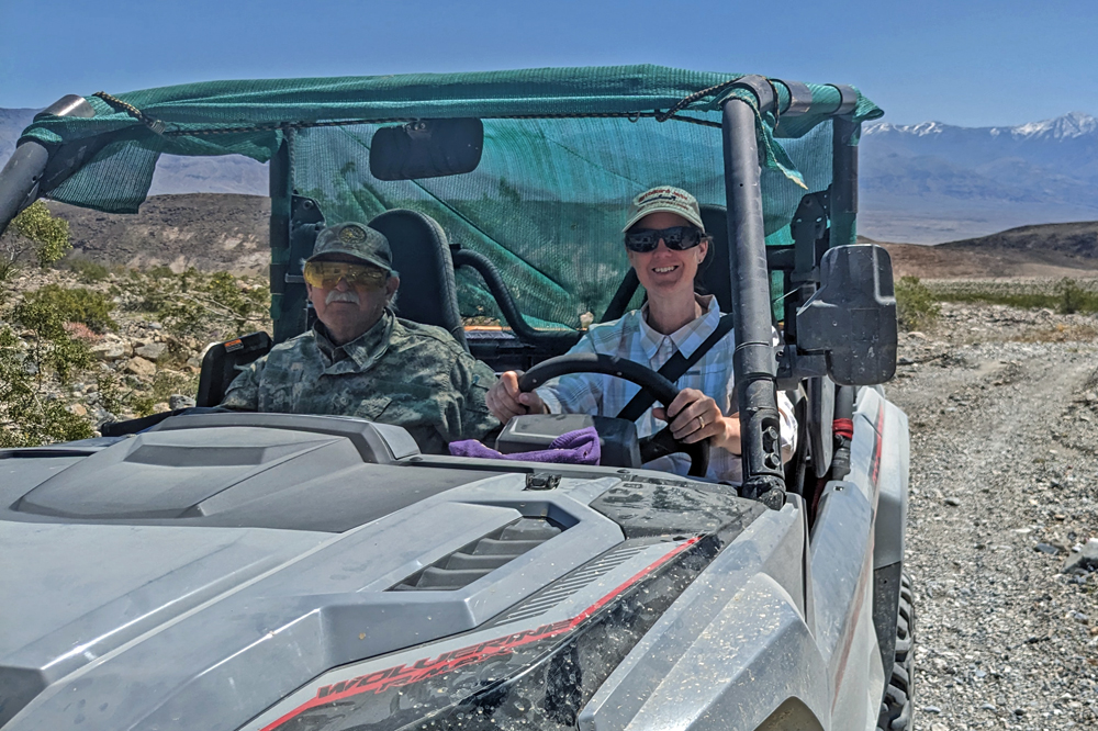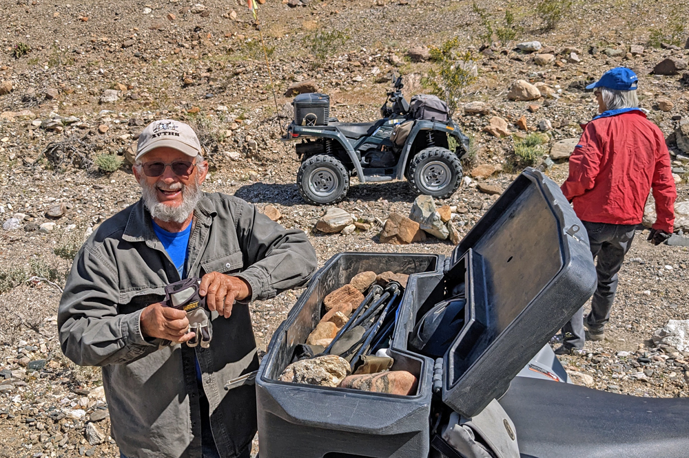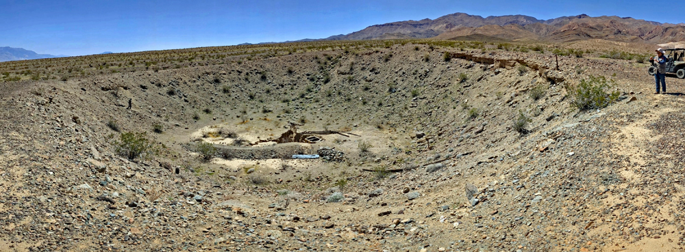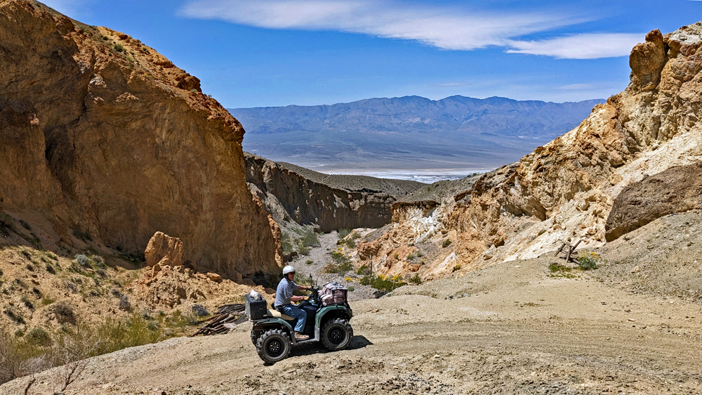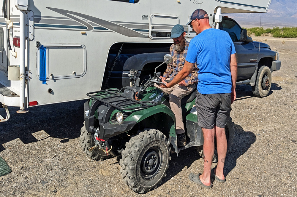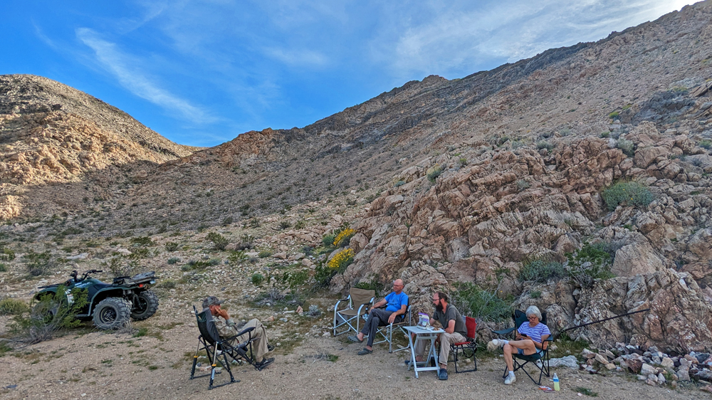 Don war wieder so lieb und hat sein zweites ATV mitgebracht, während Bill meistens das Camp bewacht, sodass Ozy, Gino, Susan und ich in wechselnden Zusammensetzungen zusammen mit den andern Ausflüge in die Seitentäler um Ballarat machen können (Pleasant Canyon, Upper und Lower Jackpot Canyon, Jail Canyon, North und South Park, Coyote Canyon mit Wanderung zur Gold Spur Mine, Goler Wash, Onyx und Kopper King Mines sowie zum rätselhaften Panamint Crater, den wir auch noch nicht kannten; s. Relive-Videos weiter unten).