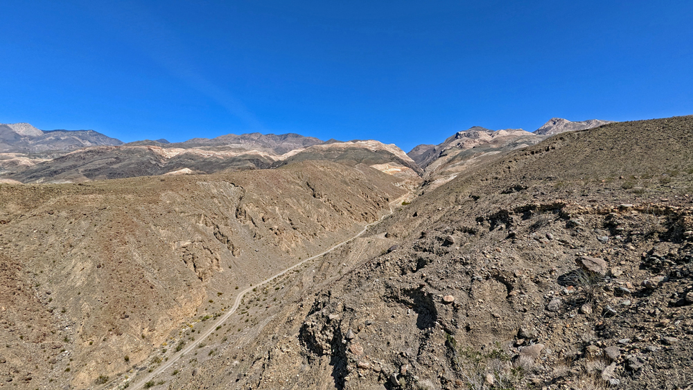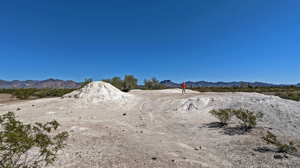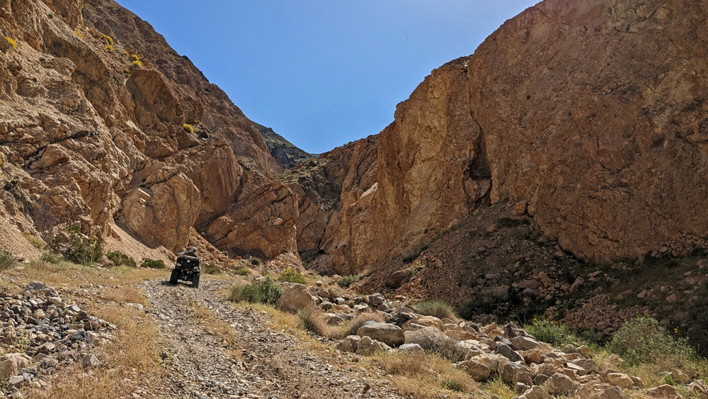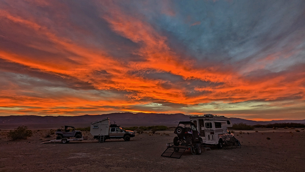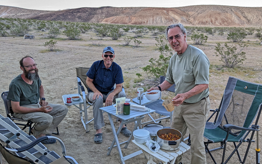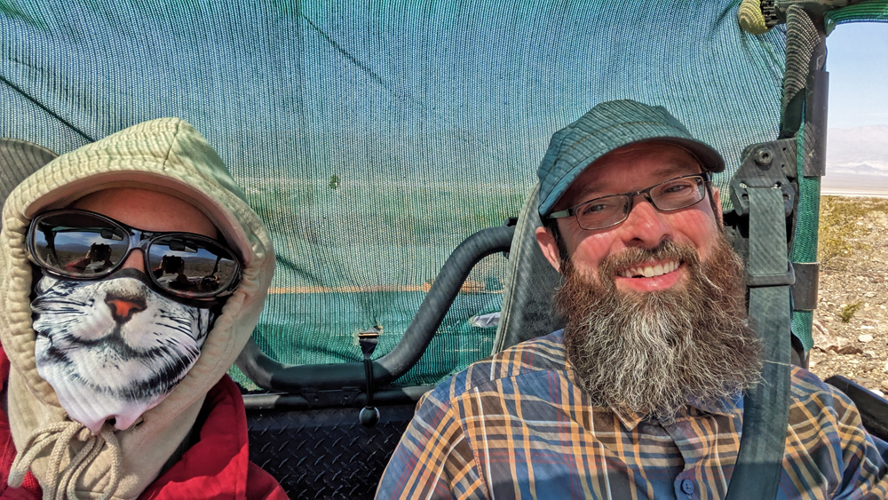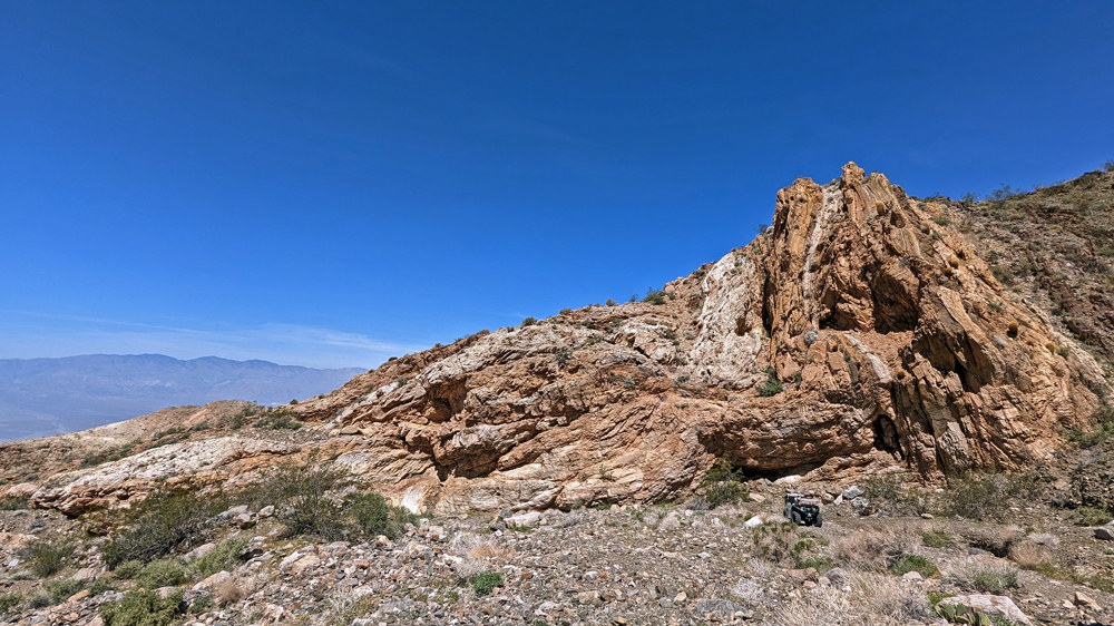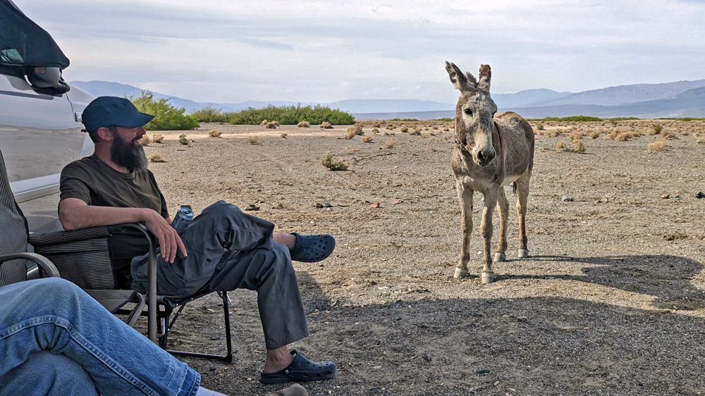 Don war wieder so lieb und hat sein zweites ATV mitgebracht, während Bill meistens das Camp bewacht, sodass Ozy, Gino, Susan und ich in wechselnden Zusammensetzungen zusammen mit den andern Ausflüge in die Seitentäler um Ballarat machen können (Pleasant Canyon, Upper und Lower Jackpot Canyon, Jail Canyon, North und South Park, Coyote Canyon mit Wanderung zur Gold Spur Mine, Goler Wash, Onyx und Kopper King Mines sowie zum rätselhaften Panamint Crater, den wir auch noch nicht kannten; s. Relive-Videos weiter unten).