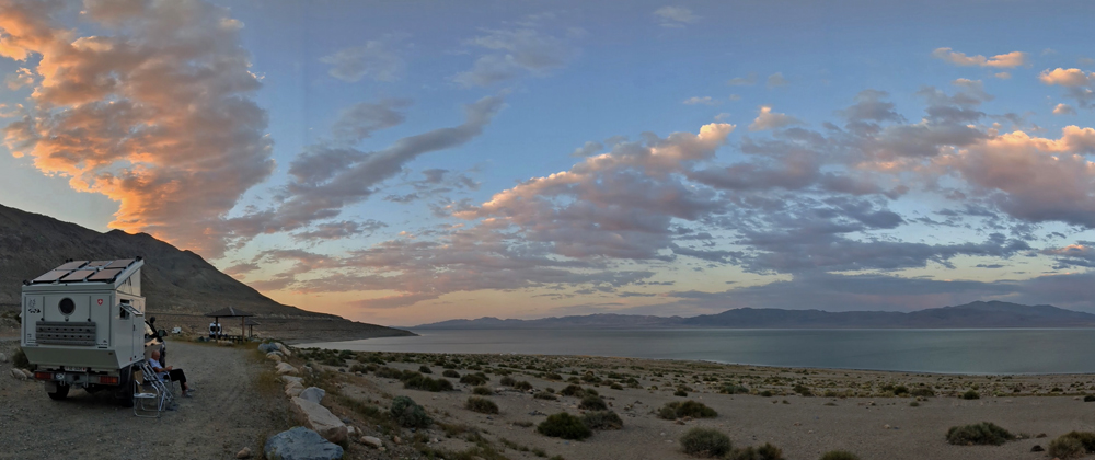 Da wir sowieso in die Gegend von Sacramento müssen – wir haben Tickets für ein Journey Konzert am 20. Mai ergattert!!! – entscheiden wir uns für die historische Sierra Nevada-Südroute, die heute via CA-50 über den 2.250 m hohen Echo Summit führt. Auf dem Weg übernachten wir am Walker Lake bei Hawthorne NV, wo wir für nur 6 USD am Sportman’s Beach stehenbleiben können, inkl. Plumpsklo und überdachtem Picknick-Tisch. Es ist warm und wir geniessen es, draussen sitzen und die Farbenspiele der untergehenden Sonne über dem See beobachten zu können.