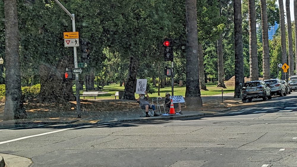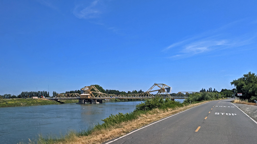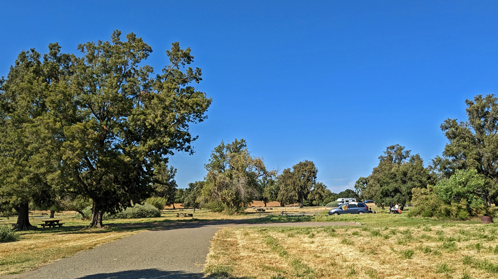 Leider müssen wir feststellen, dass der Park recht stark heruntergekommen ist: Die meisten WCs/Duschen sind zu, die Wassertemperatur in einem Gebäude viel zu heiss, am anderen ganz knapp warm genug und anstatt 5 bekommt man für 50 Cent nur 2 Minuten Wasser. Wir melden die fast siedend heisse Dusche und bekommen als Dank eine ganze Handvoll Münzen zurück; leider stimmt die kurze Duschzeit, sie müssen die angeschriebenen Zeit noch anpassen… Nicht nur die Sanitärgebäude, sondern das ganze Areal macht einen verfallenen Eindruck. Das Personal erklärt uns dann, dass während Covid die Parks einfach geschlossen wurden, ohne sie auch nur minimal zu unterhalten. Zusätzlich hätten sich Obdachlose hier niedergelassen, die in den Sanitäranlagen alles ausgebaut und/oder kaputtgemacht hätten. Der Park ist jetzt nur noch nominell ein California State Park, die tatsächliche Betreiberin eine private Firma, die versucht, zwei Jahre Vernachlässigung und Vandalismus wieder in den Griff zu bekommen. Sehr schade, denn an und für sich wäre der riesige Park sehr schön, mit viel Grünfläche, Bäumen, einer grossen Boat Ramp, einer Marina und sogar einem (überwachten!) Badestrand am Three Mile Slough.
