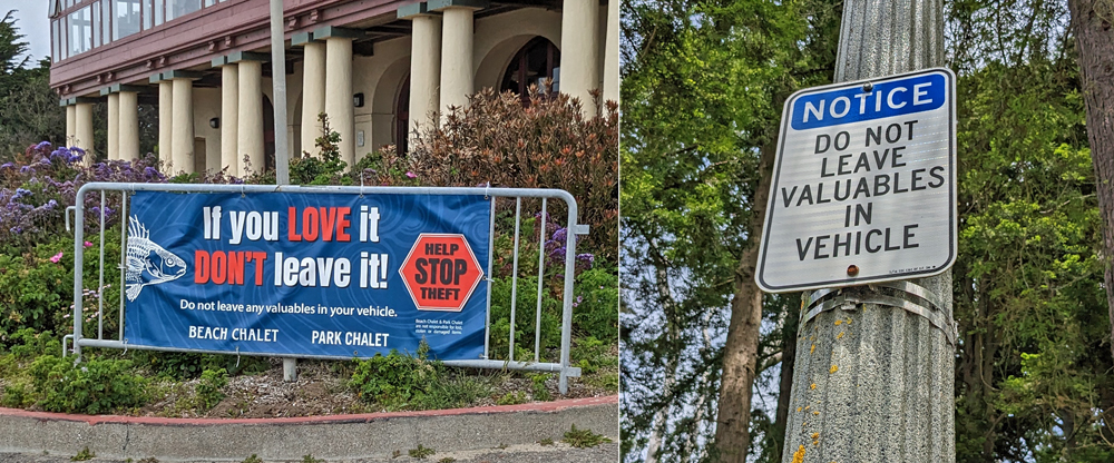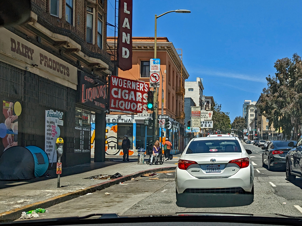 Das Obdachlosenproblem war sichtbar, aber irgendwie weniger schlimm, als wir es von den vielen Erzählungen und Warnungen her erwartet hatten. Parken ging mit dem Mietwagen eigentlich immer recht problemlos und mit geöffnetem Handschuhfach und leerem Auto hatten wir auch keine Einbruchdiebstahl-Probleme. Das nächste Mal würden wir aber vermutlich nicht mehr mit unserem Camper bzw. einem Mietwagen kommen, sondern städtereisemässig ein Hotel nehmen…