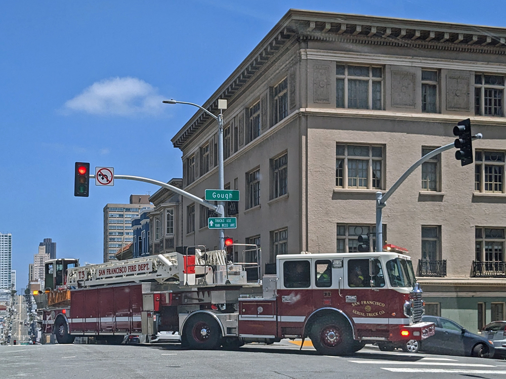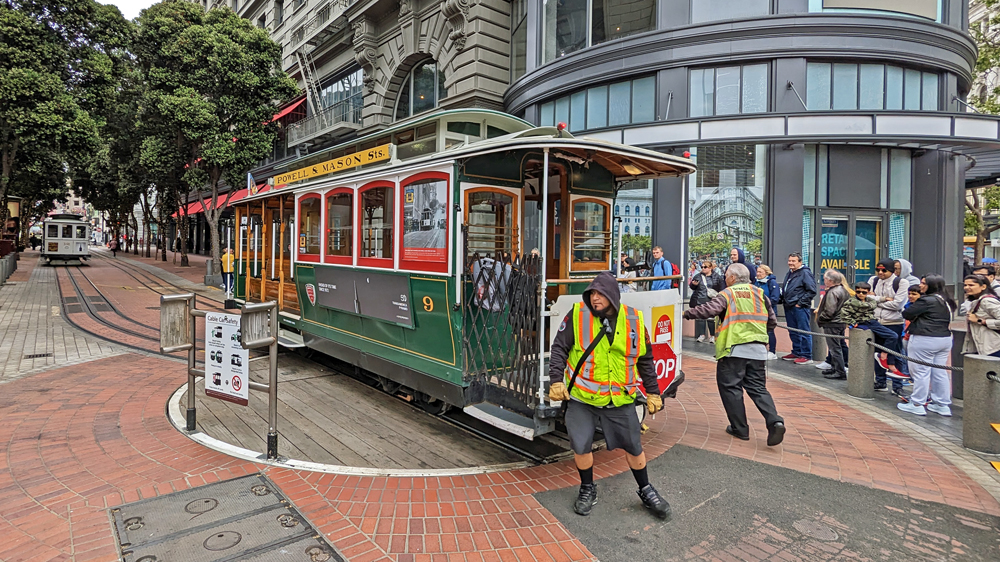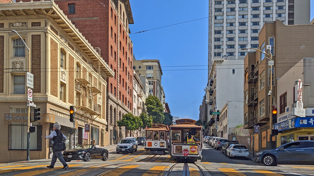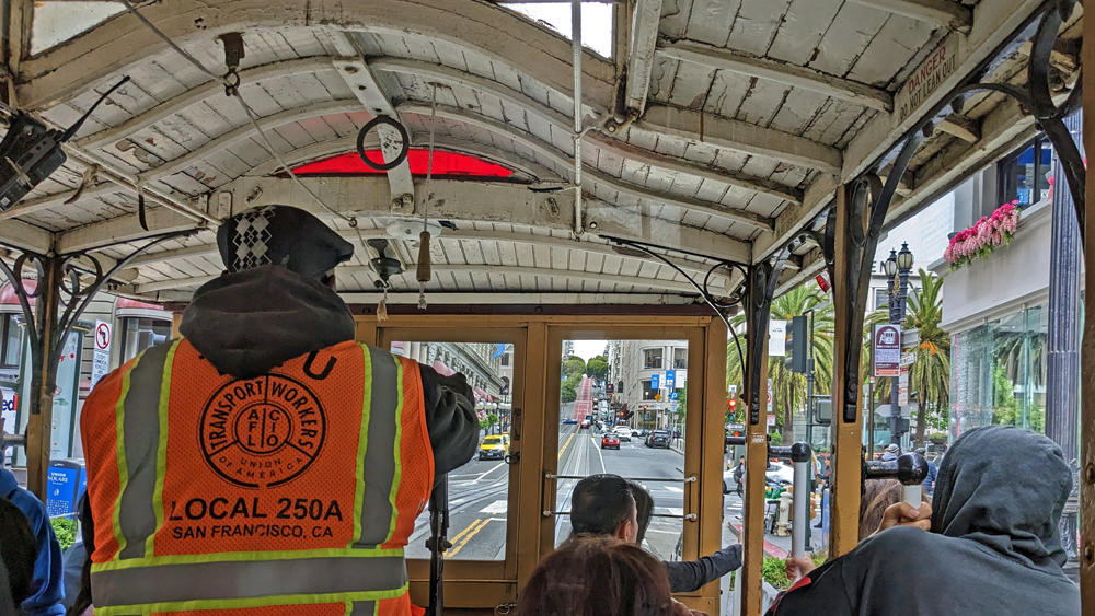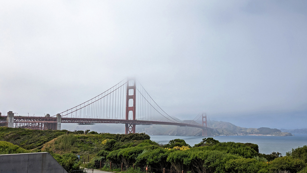 In Oakland besuchen wir auch noch die zweite Hälfte der originalen Jack London-Hütte, in der dieser den Winter 1897/98 im Yukon verbrachte (die untere Hälfte hatte ich letzten Herbst in Dawson City besichtigt). Dazwischen essen wir fein und lassen uns einfach mal von der Grossstadt treiben. Das Wetter in San Francisco ist übrigens «interessant»: Ist es im Hinterland heiss und trocken, ist es in um die Bay jeden Morgen bedeckt bzw. neblig und sehr kalt. Im Lauf des Tags, meistens gegen ein Uhr, zieht sich der Nebel Richtung Küste, etwa auf Höhe der Golden Gate Bridge zurück, die wir immer nur durch Schleier zu sehen bekommen, und dann wird es im sonnigen Teil recht warm und schön. Nur am letzten Tag, als wir mit der Cable Car fahren, löst sich der Hochnebel gar nicht auf und wir frieren erbärmlich.